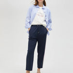 Camiseta blanca confeccionada en algodón BCI 95%. Cuello redondo y manga corta. Detalle de estampado de strass en frontal a contraste.