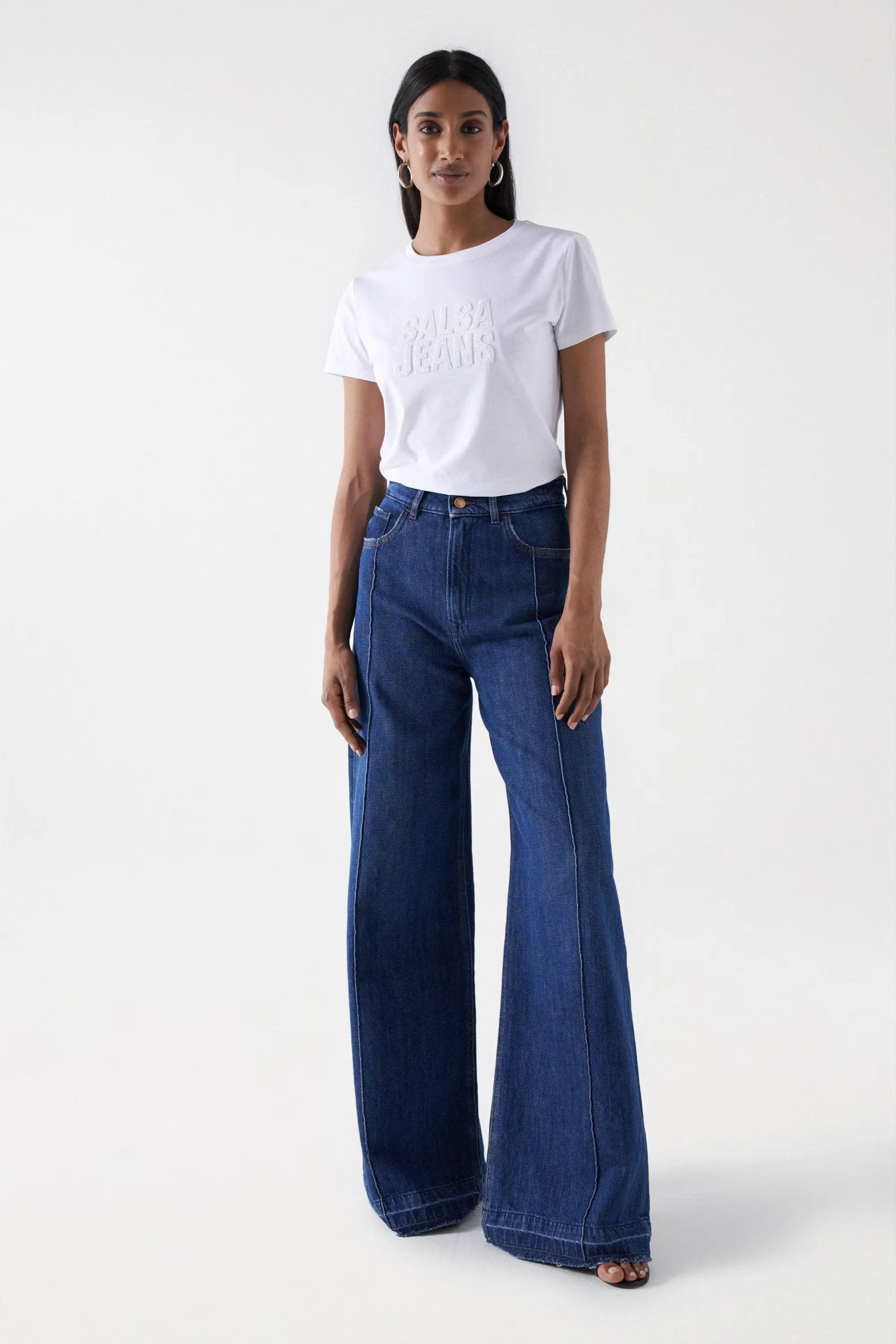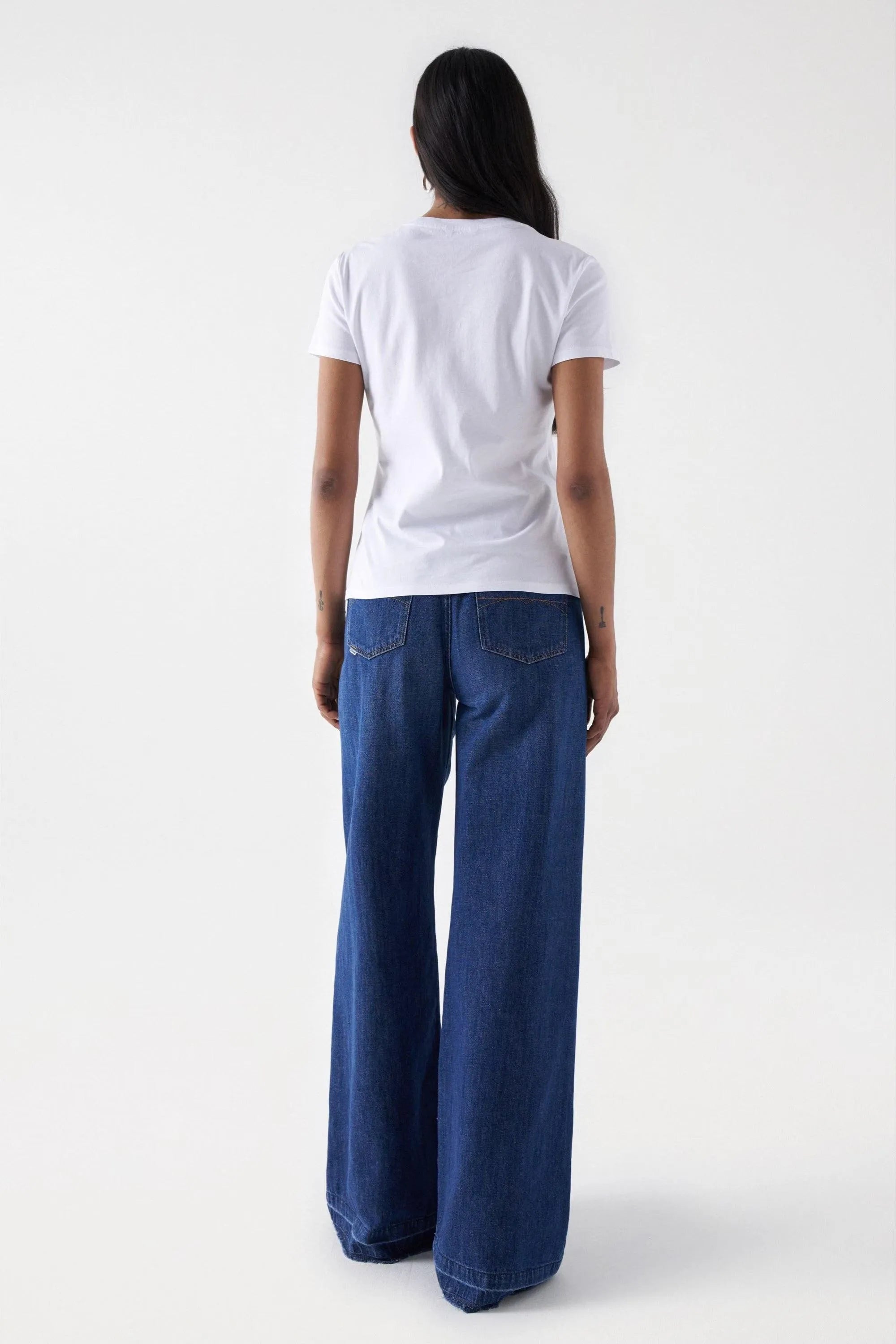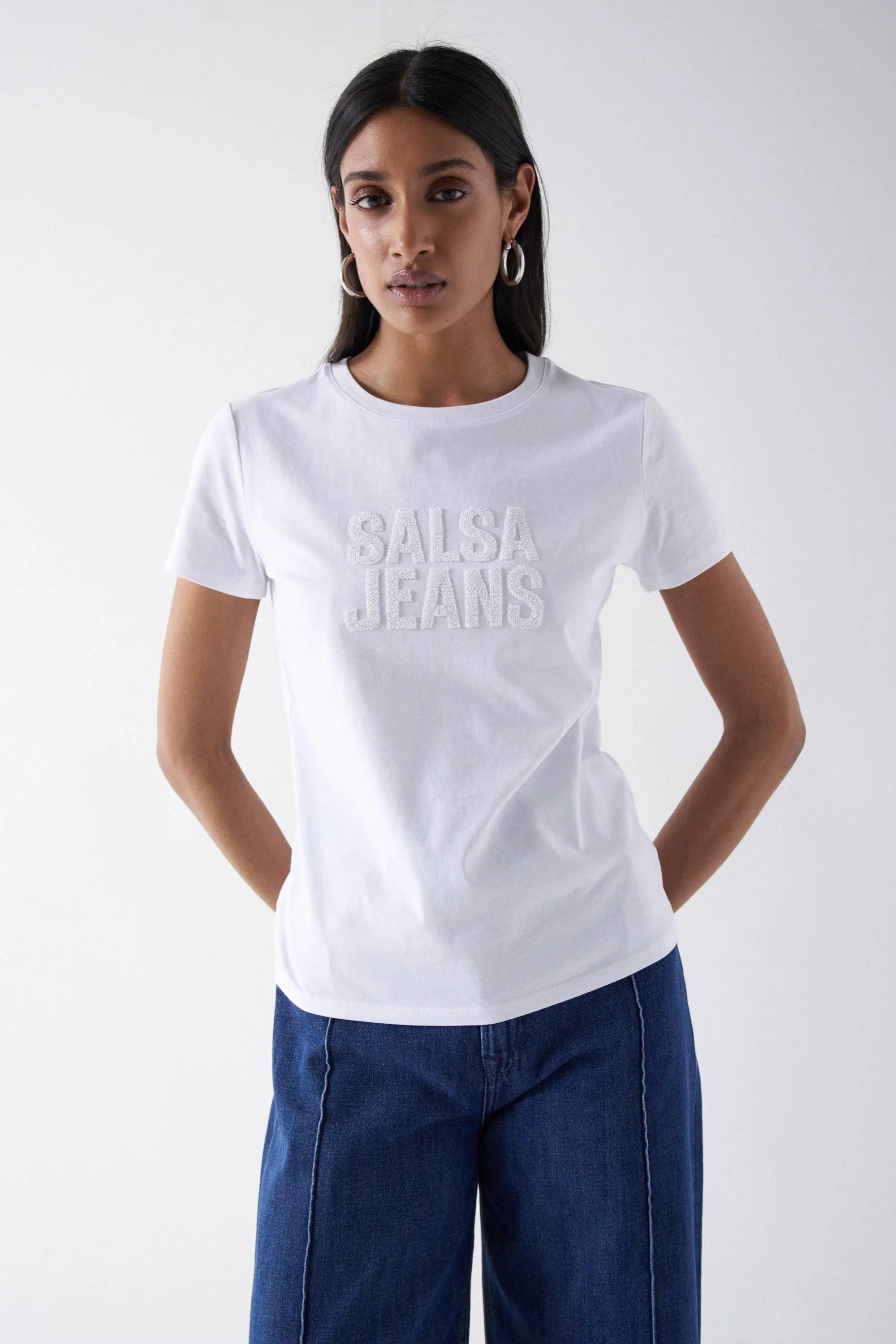 Camiseta Salsa Jeans con Marca de Cuentas - ECRU