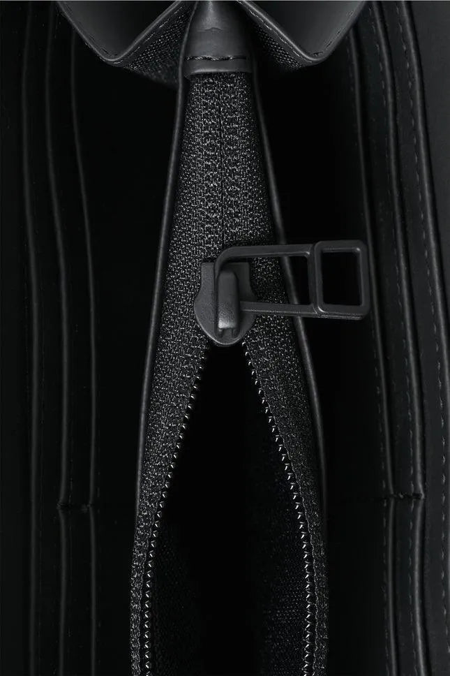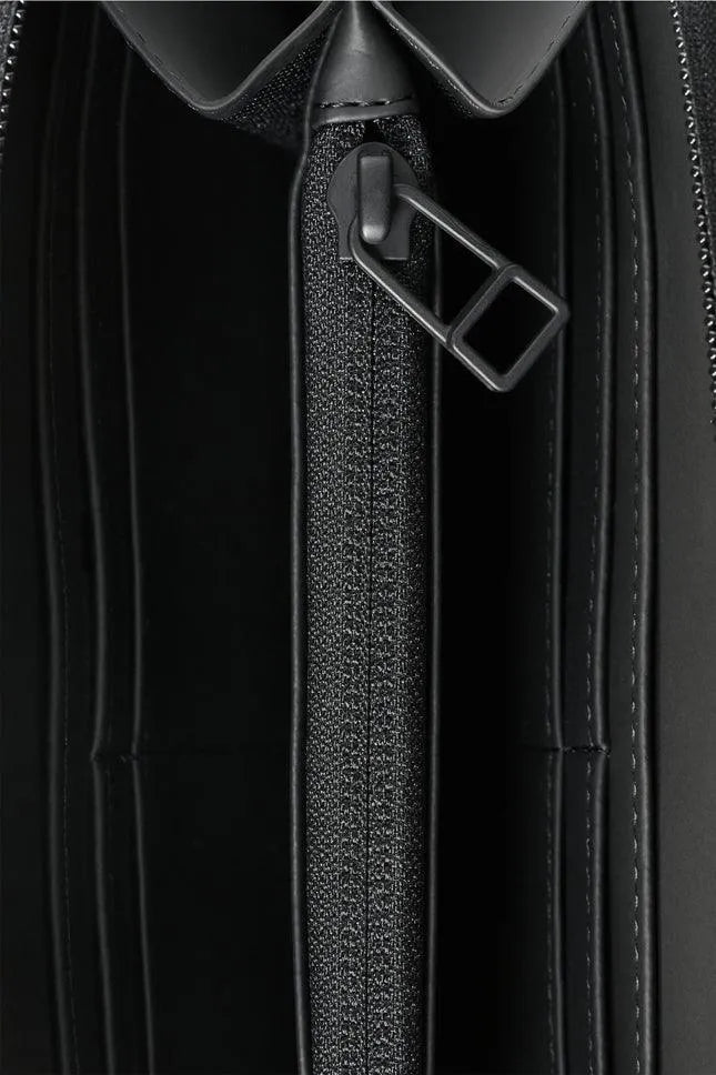 Cuatro ranuras para tarjetas, cuatro compartimentos grandes y un compartimento con cremallera