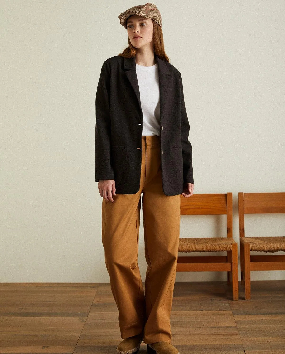 Americana Yerse Cuello Solapa Chocolate - ECRU