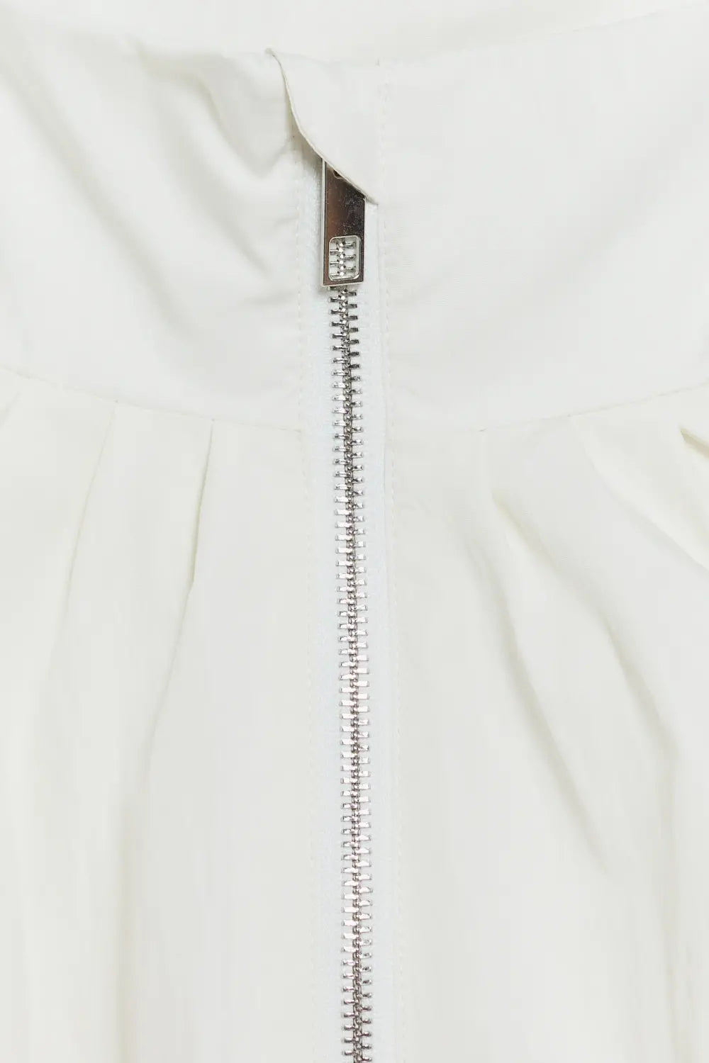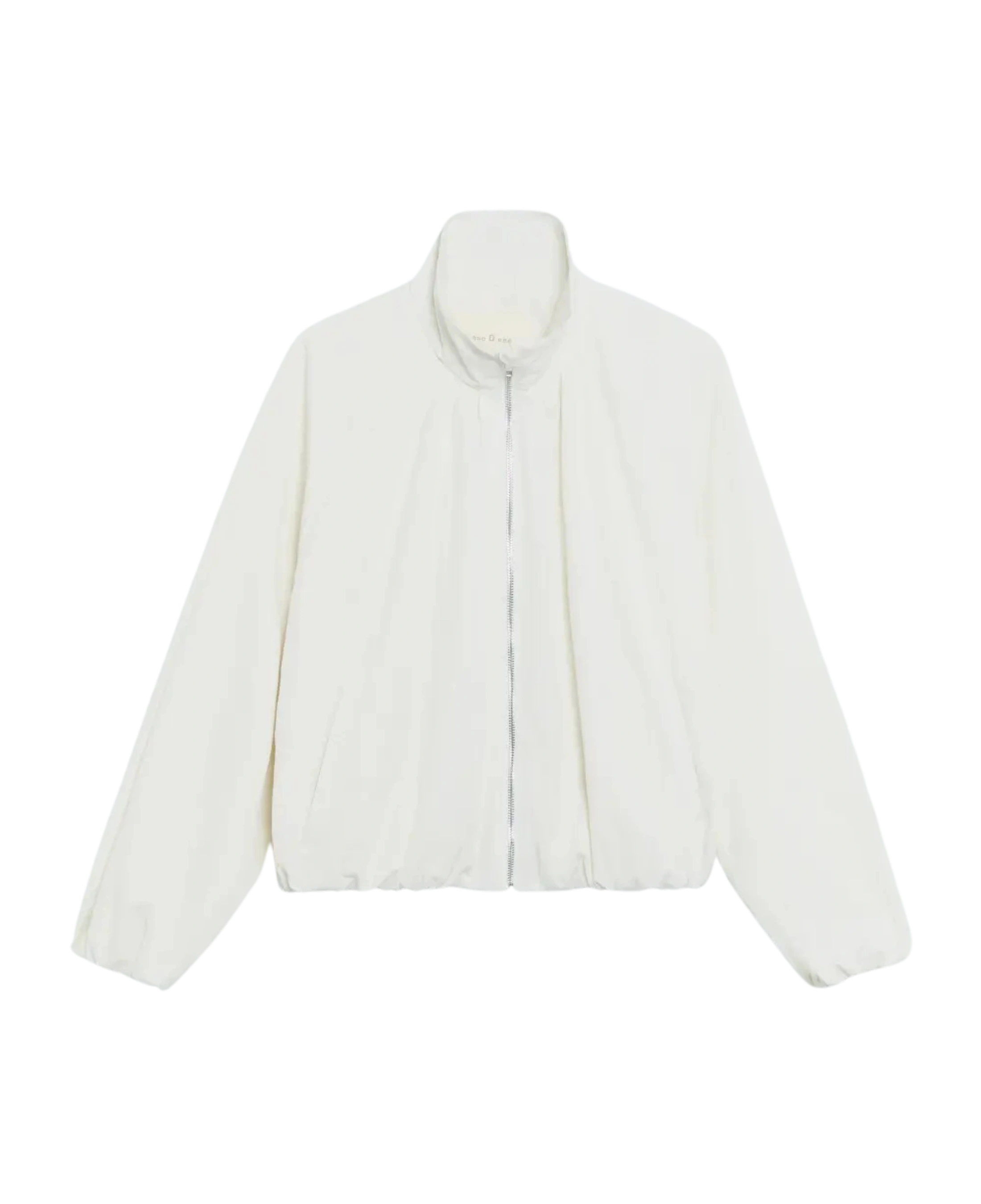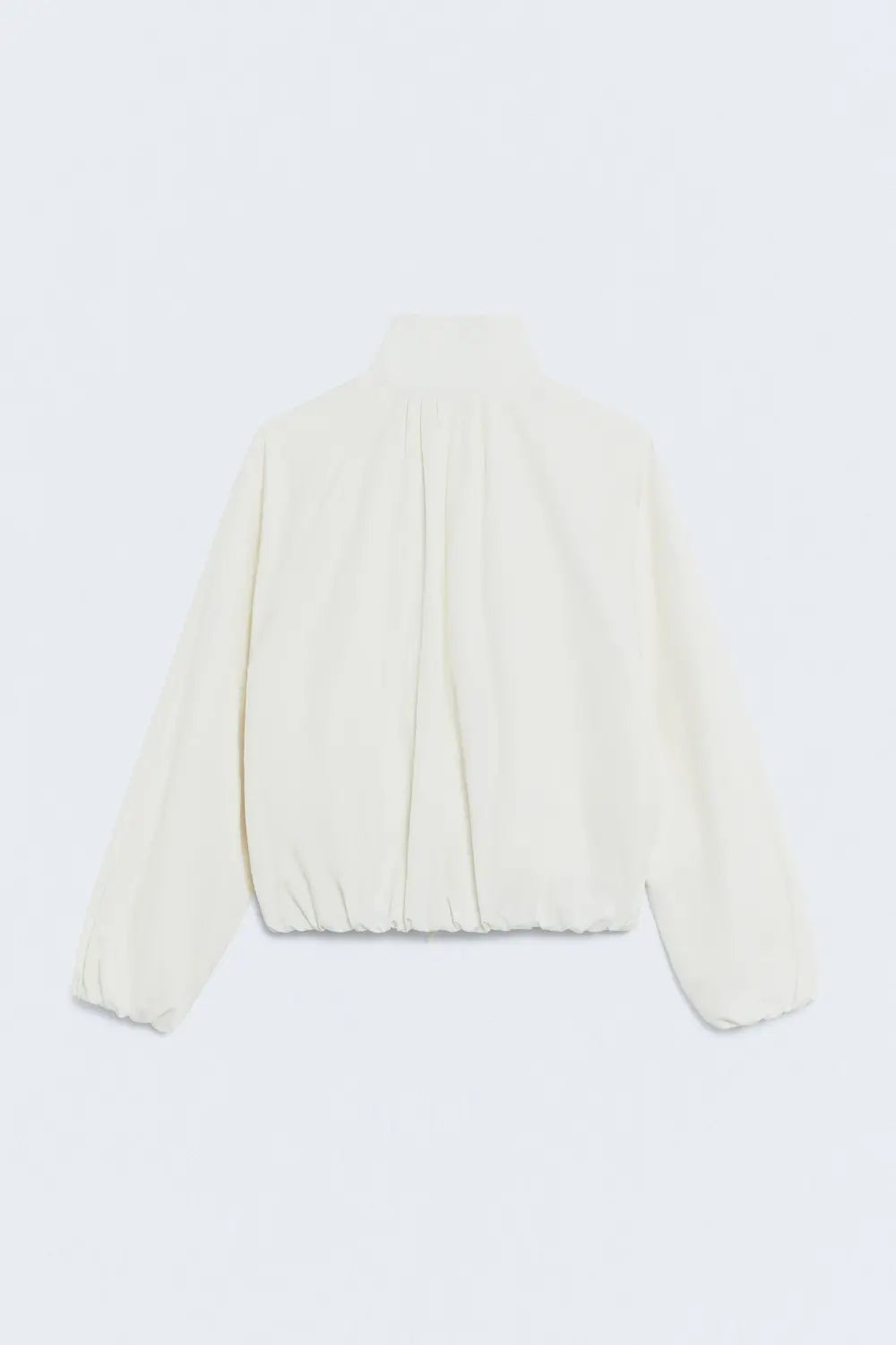 La Chaqueta Ligera Montblanc Blanca de eseOese es una prenda técnica de entretiempo confeccionada en una mezcla de 70 % poliéster reciclado y 30 % poliamida, que ofrece ligereza, resistencia y tratamiento repelente al agua. Su diseño incluye cuello alto con frunces, cierre frontal de cremallera, bolsillos laterales discretos y puños con ajuste de goma, combinando funcionalidad urbana con un acabado limpio y contemporáneo. El color blanco aporta luminosidad y versatilidad, ideal para combinar con tonos neutros o contrastes más oscuros.