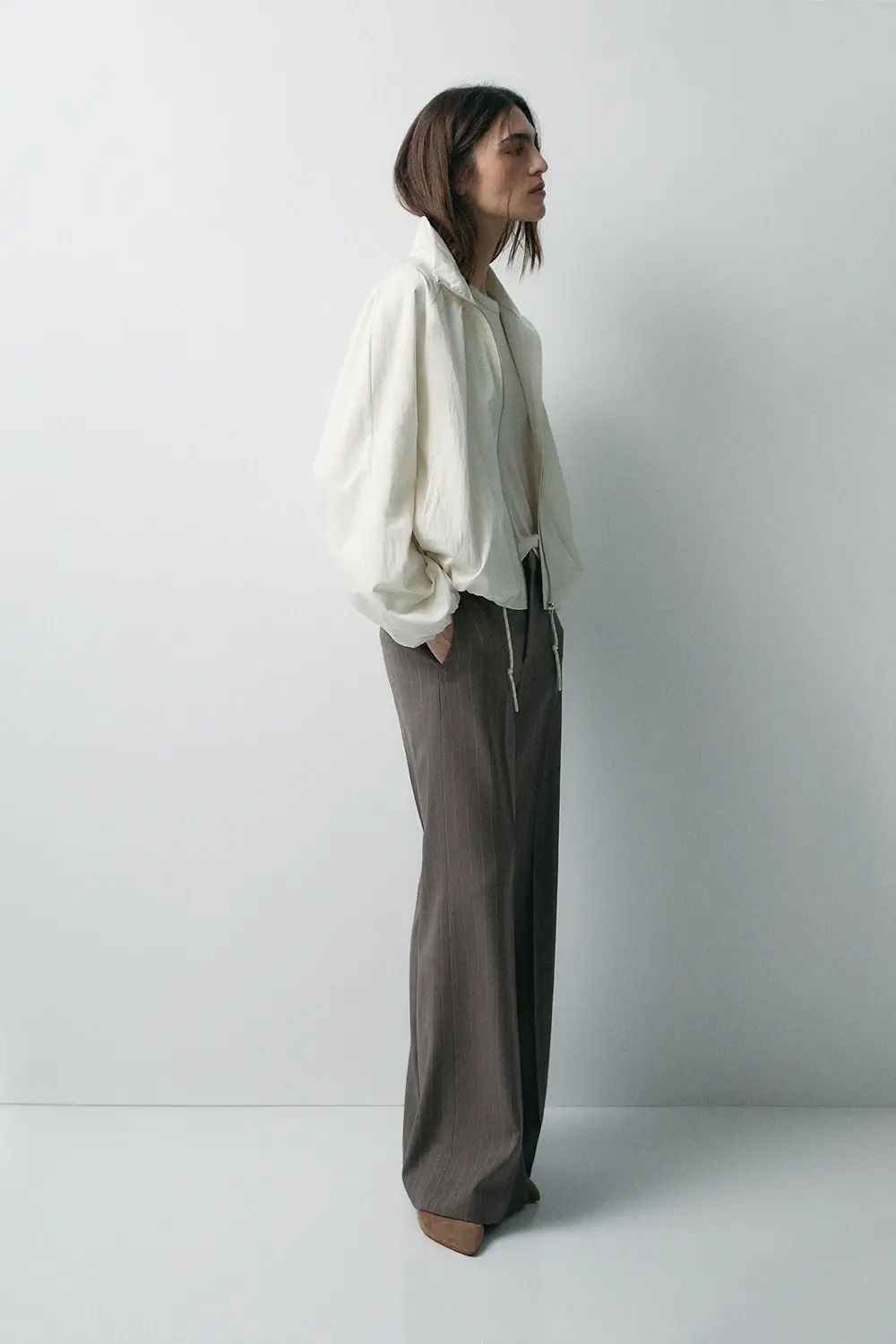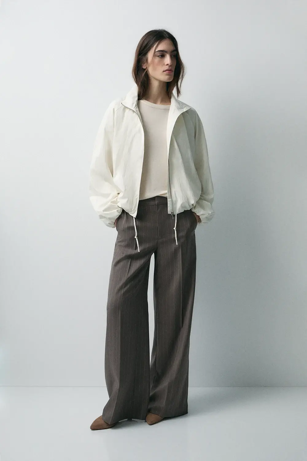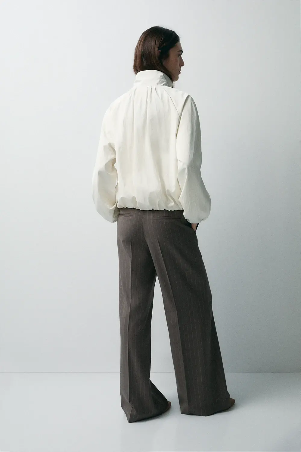 La Chaqueta Ligera Montblanc Blanca de eseOese es una prenda técnica de entretiempo confeccionada en una mezcla de 70 % poliéster reciclado y 30 % poliamida, que ofrece ligereza, resistencia y tratamiento repelente al agua. Su diseño incluye cuello alto con frunces, cierre frontal de cremallera, bolsillos laterales discretos y puños con ajuste de goma, combinando funcionalidad urbana con un acabado limpio y contemporáneo. El color blanco aporta luminosidad y versatilidad, ideal para combinar con tonos neutros o contrastes más oscuros.