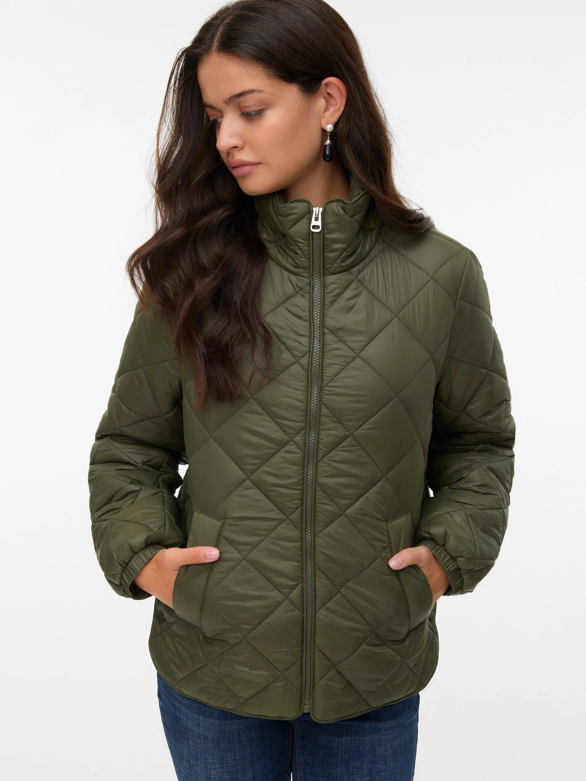 Esta chaqueta acolchada de cuello levantado es una prenda ligera y funcional, pensada para el entretiempo y para adaptarse con naturalidad a un uso diario urbano. Su diseño limpio y contemporáneo ofrece una sensación de abrigo equilibrado, sin exceso de volumen, manteniendo una estética sencilla y fácil de combinar.