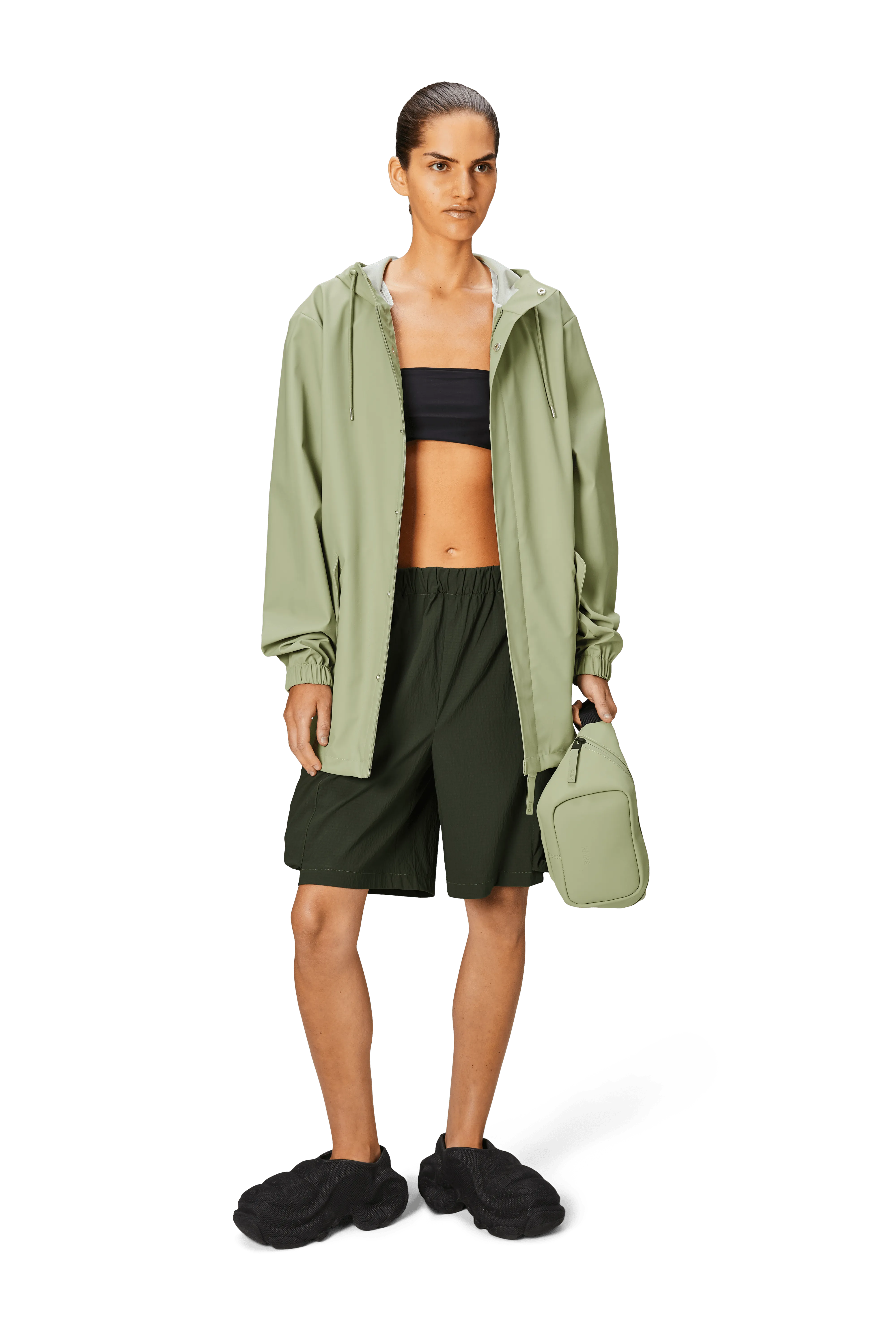 Esta chaqueta impermeable, confeccionada en el tejido de PU característico de Rains, presenta costuras soldadas por ultrasonidos. Ofrece un acabado ligero, un tacto suave y una elegante caída.