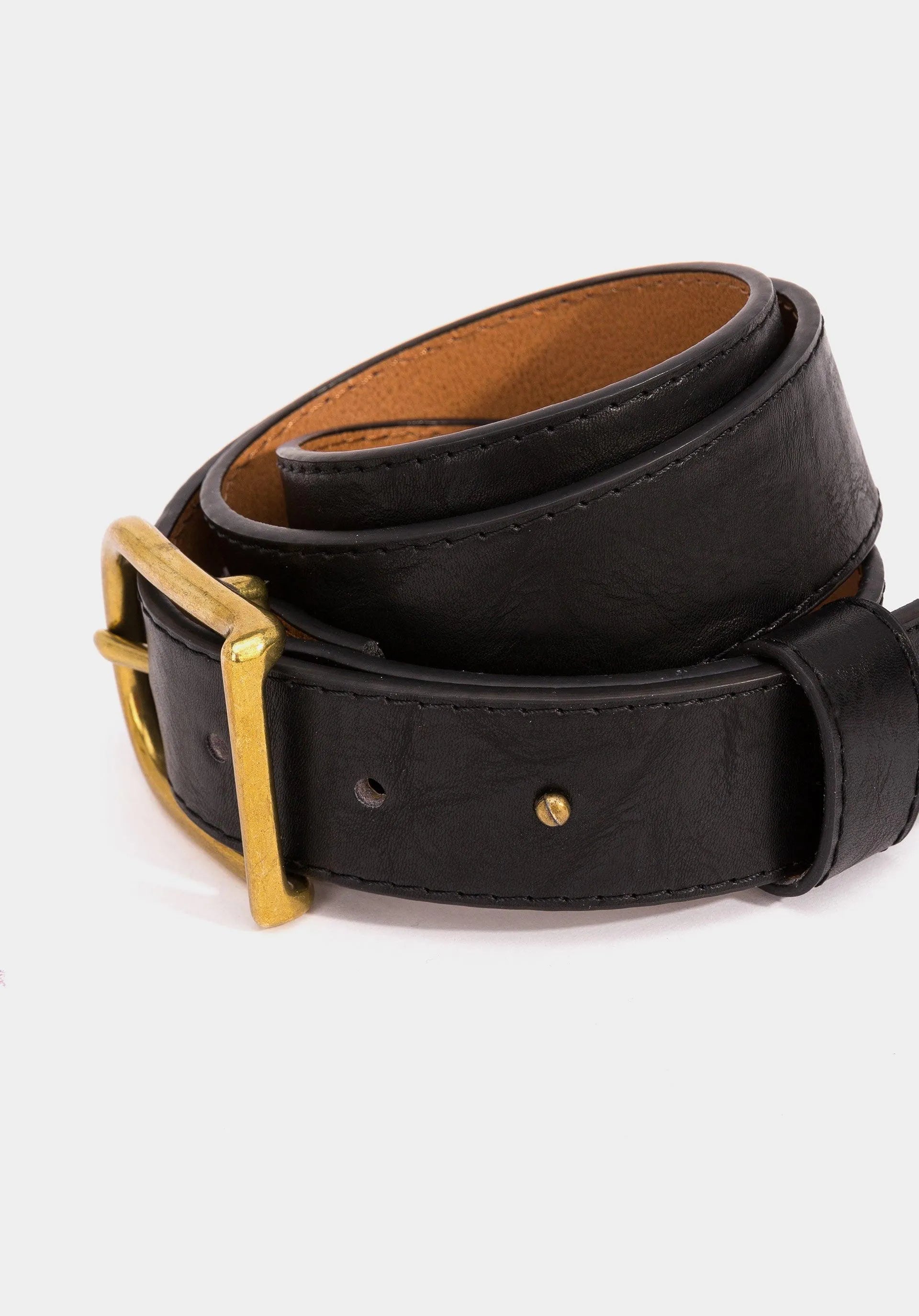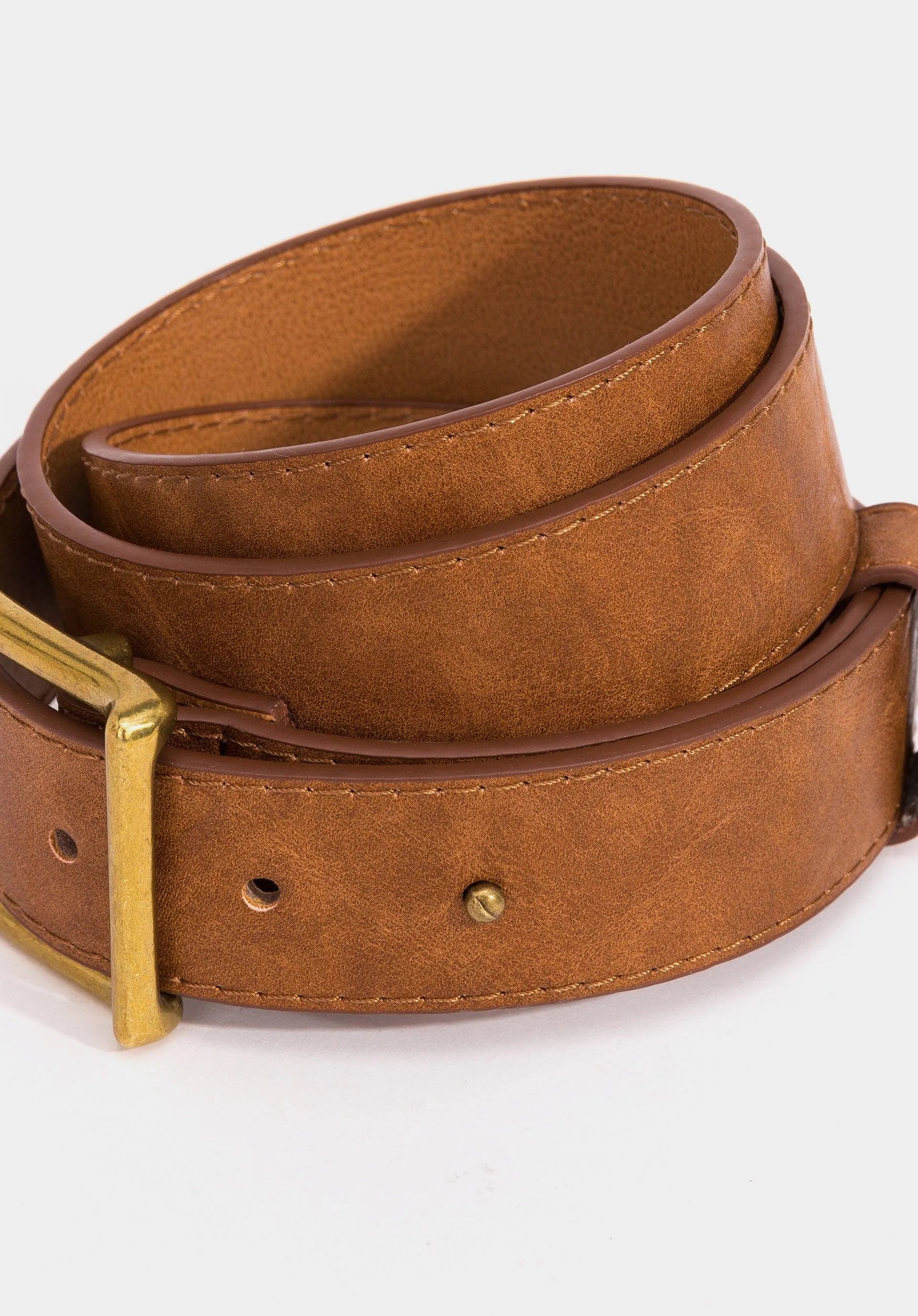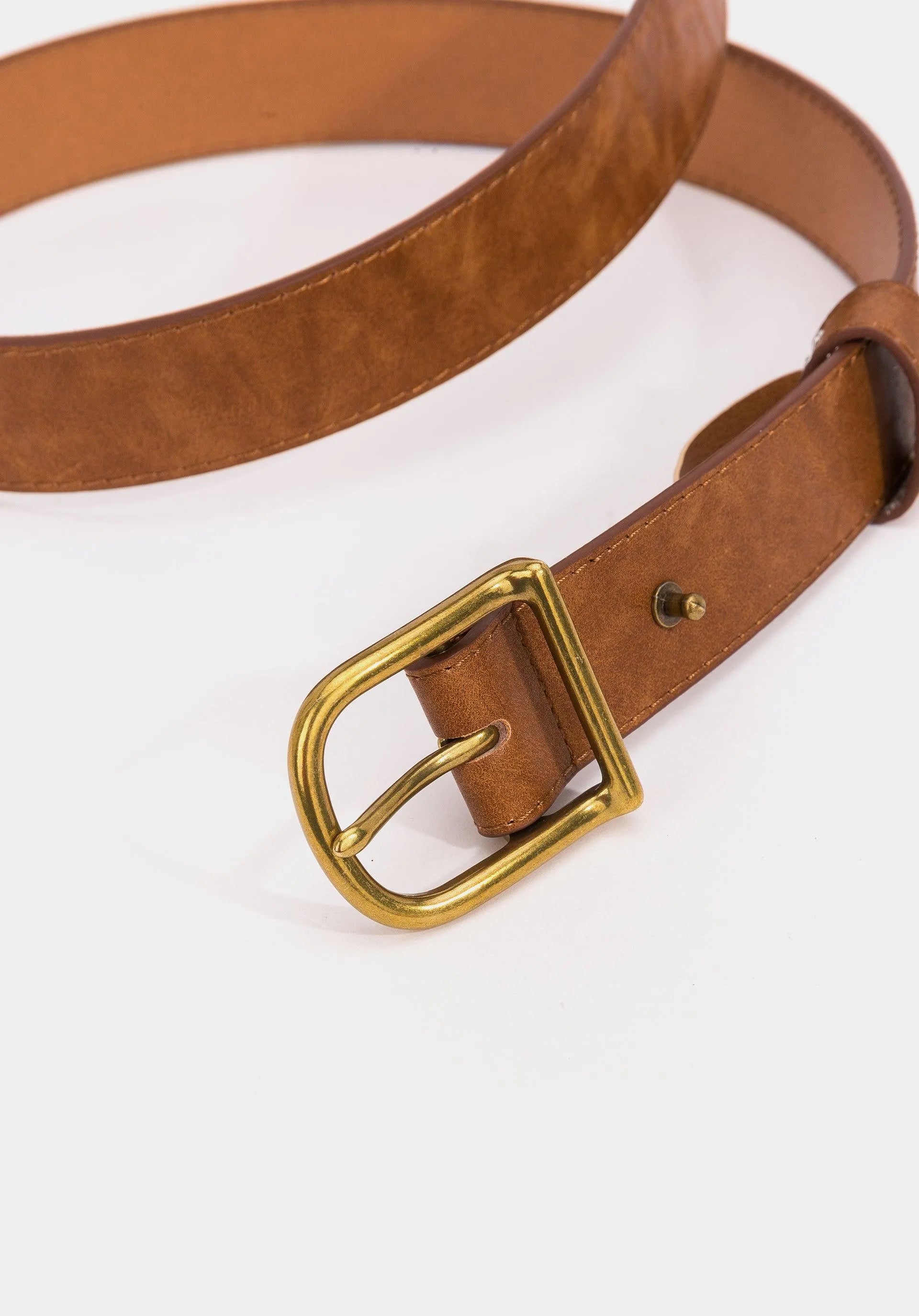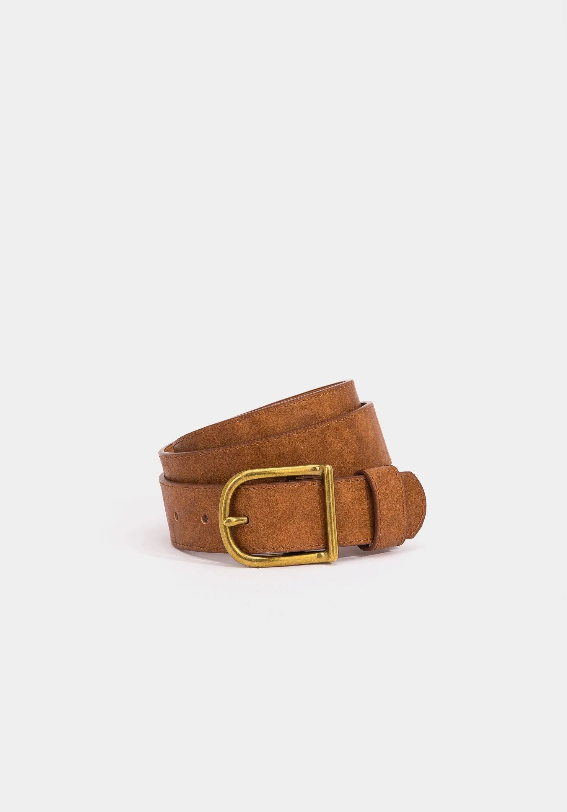 Cinturón de polipiel con hebilla envejecida.