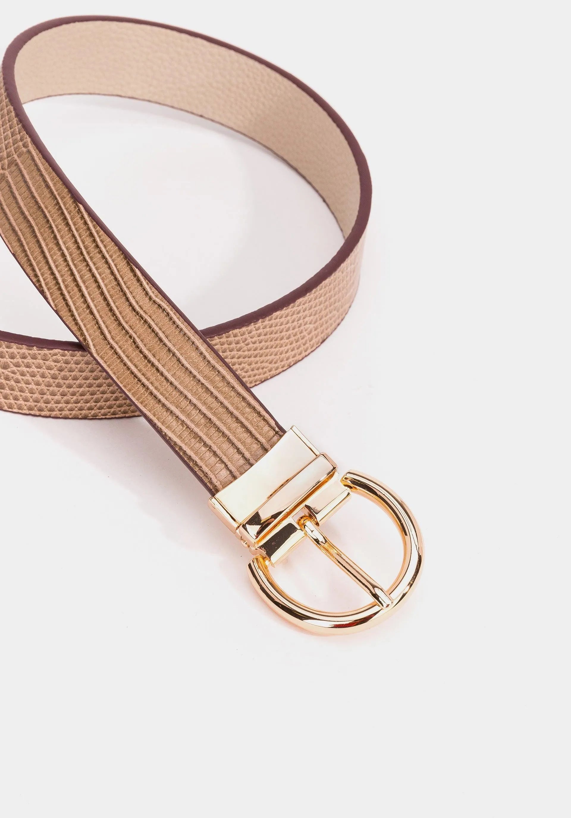 Cinturón reversible con hebilla redonda.