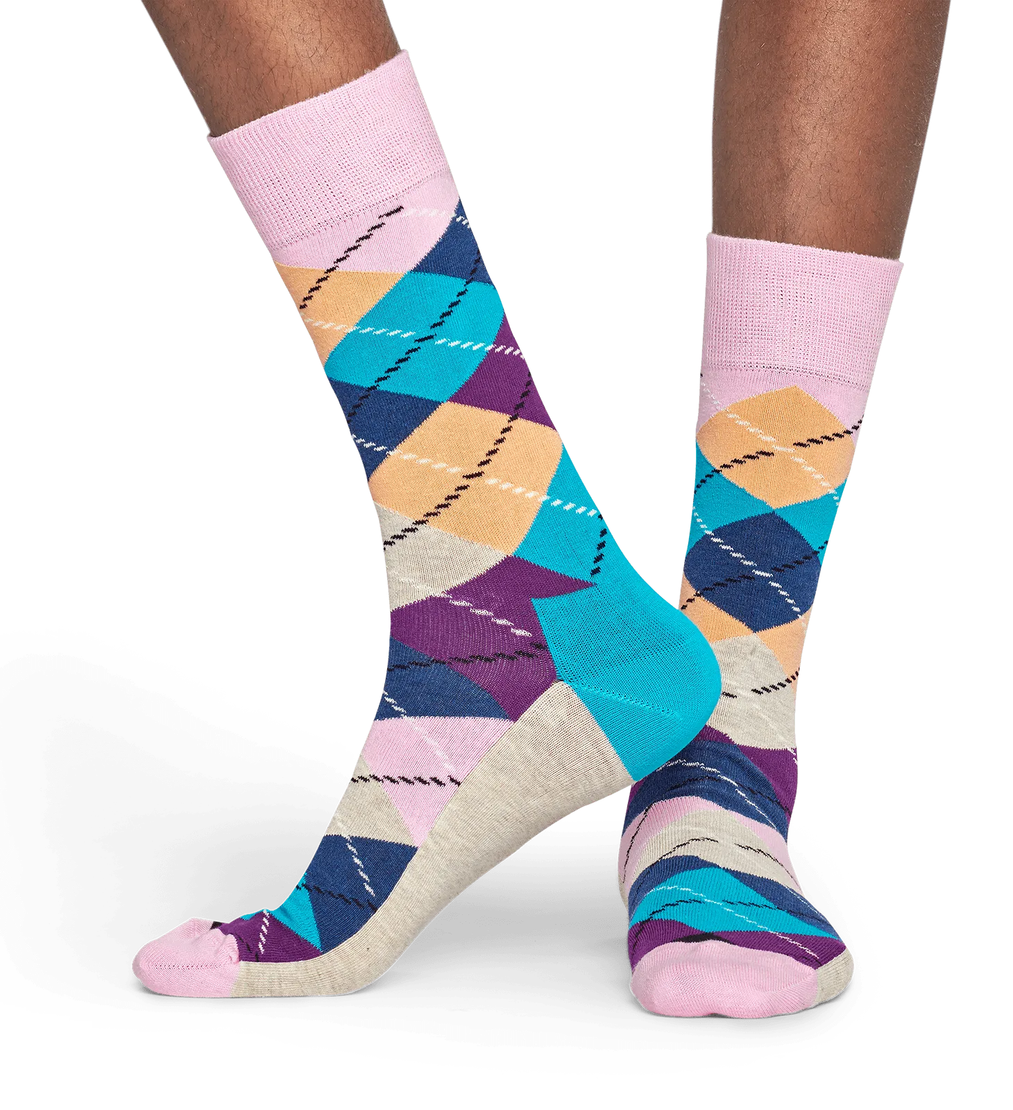 ¡No hay mejor complemento para tu vestuario que los calcetines Argyle! ¡Quién se hubiera podido imaginar que un diseño clásico podría ser tan divertido! Estos calcetines se caracterizan por una mezcla de diamantes, triángulos y una original combinación de colores con tonalidades de naranja y azul que alegrarán tus días. Calcetines hechos con algodón peinado disponibles en todas las tallas para hombre y mujer: 36-40 y 41-46.