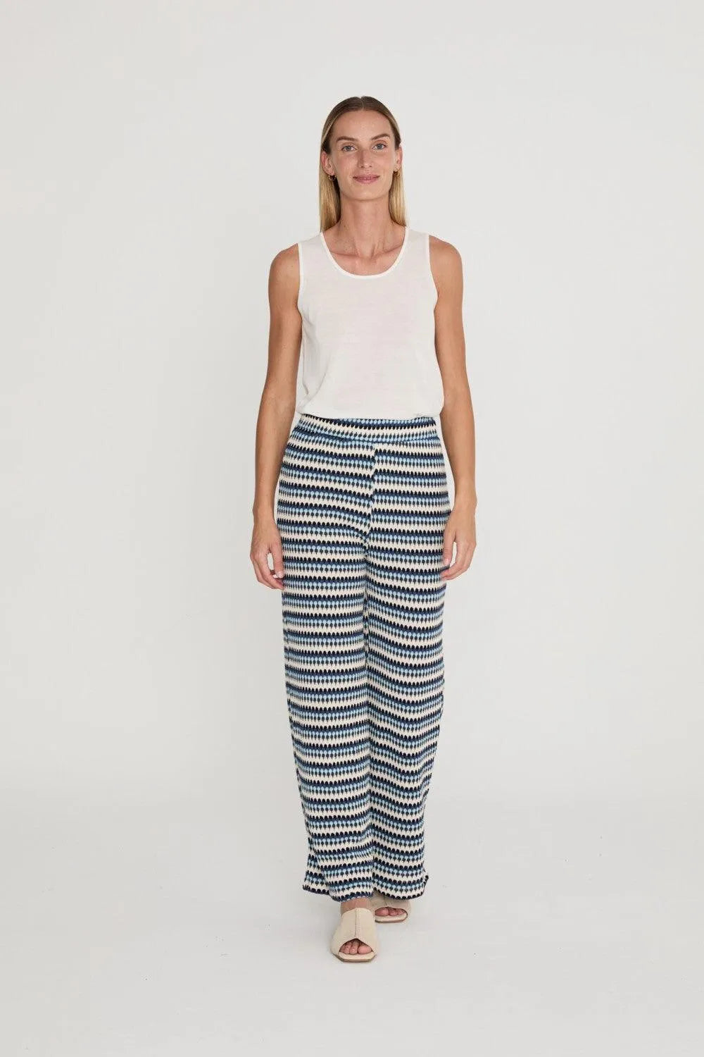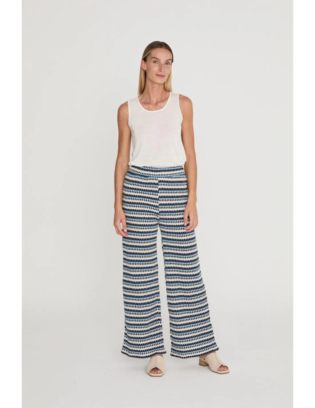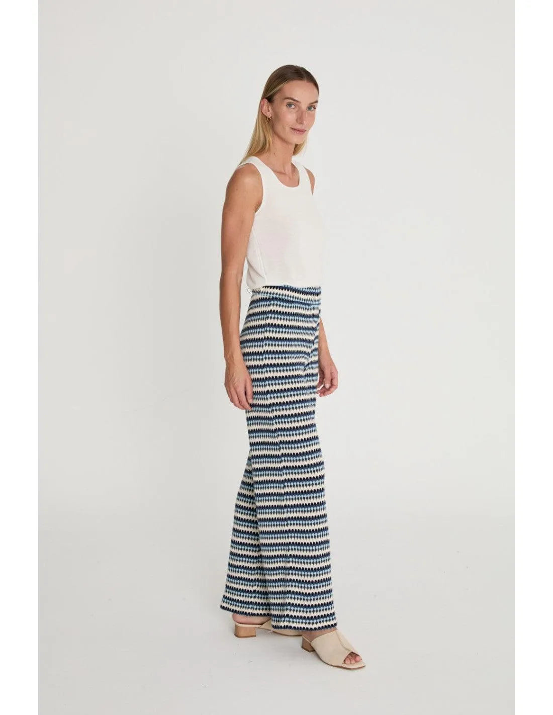 Pantalón recto relajado de malla especial y goma ancha en la cintura. Crea el total look con el chaleco DENYS.