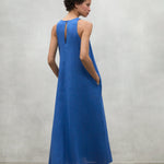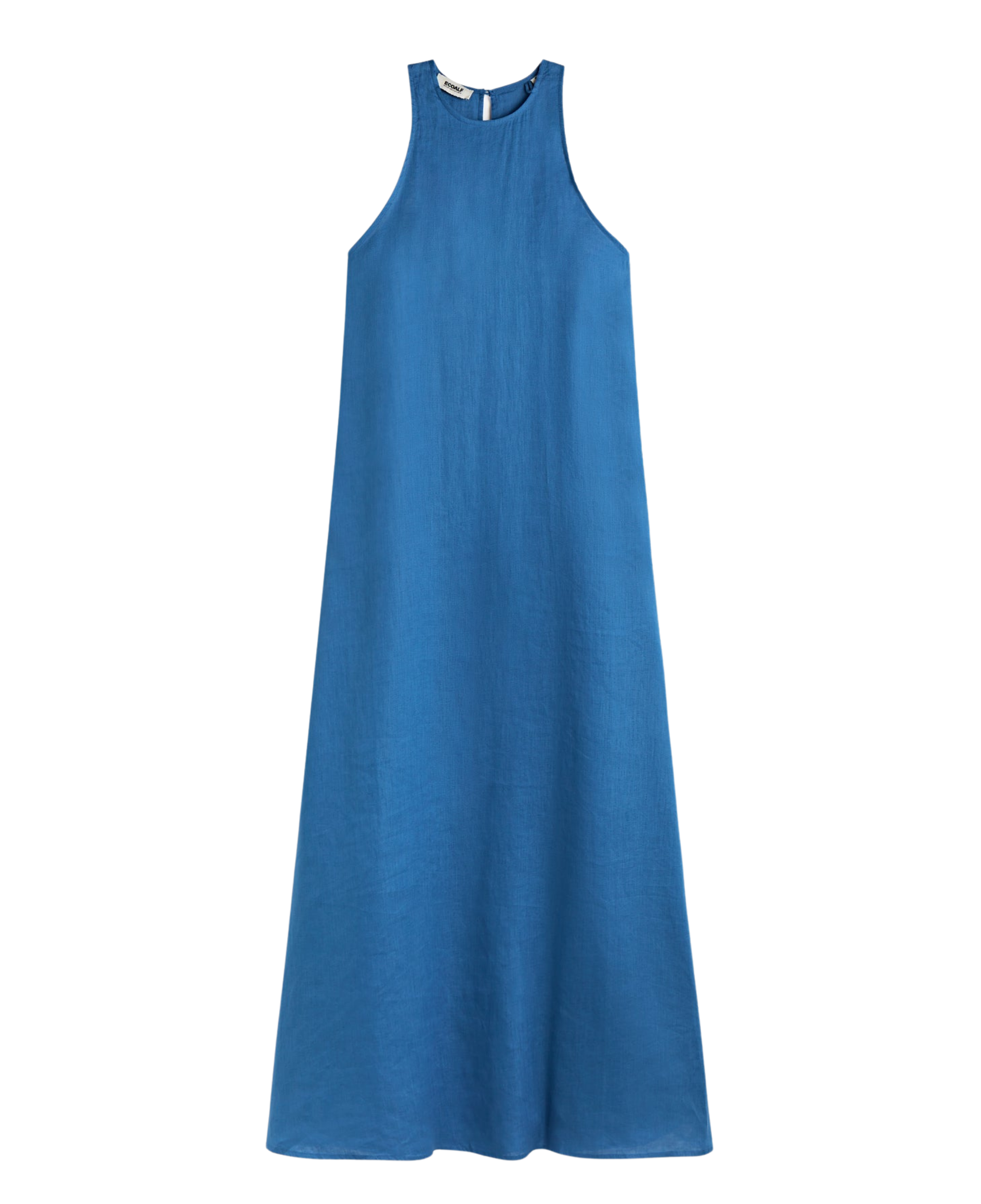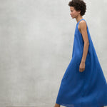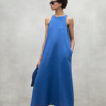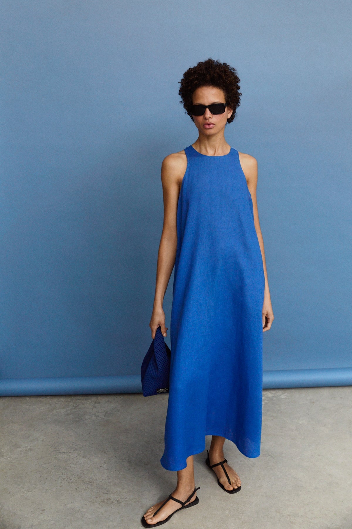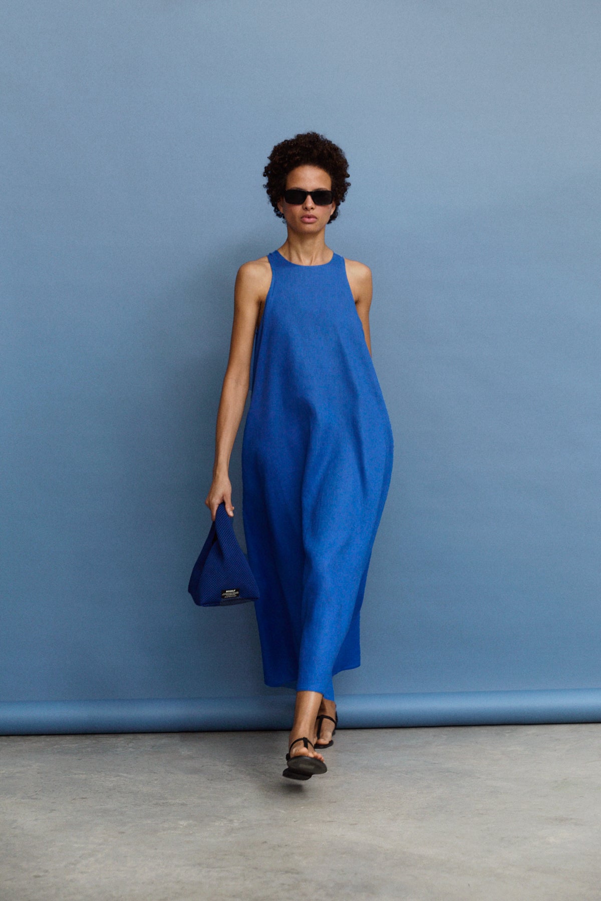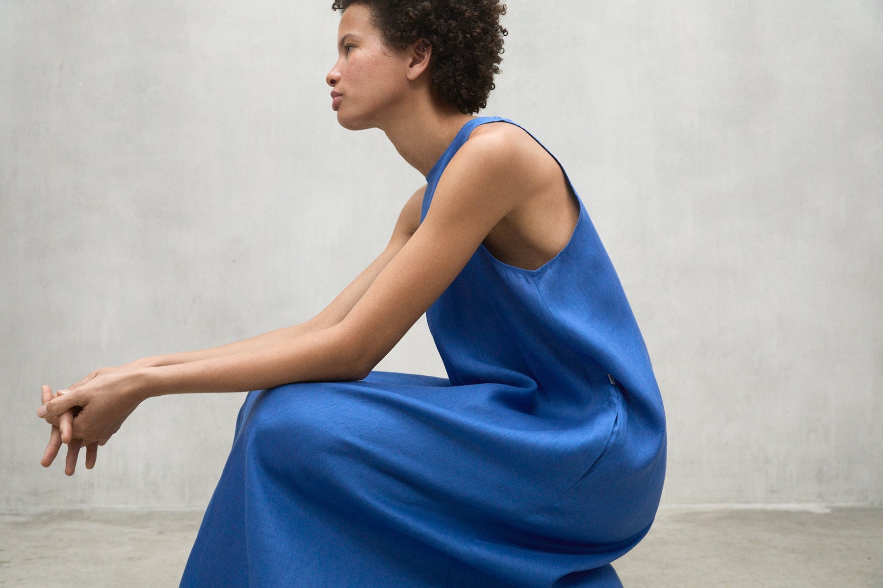 El vestido Ukara, hecho de 20% lino reciclado. El mínimo impacto medioambiental del lino lo convierte en una opción destacable. El lino requiere mucha menos agua y pesticidas que otros cultivos y, además, es biodegradable. Ofrece un fit holgado y un cuello redondo. Es una prenda cómoda que, según la combinación, puede adaptarse a un look más casual o más arreglado, ideal para cualquier ocasión.