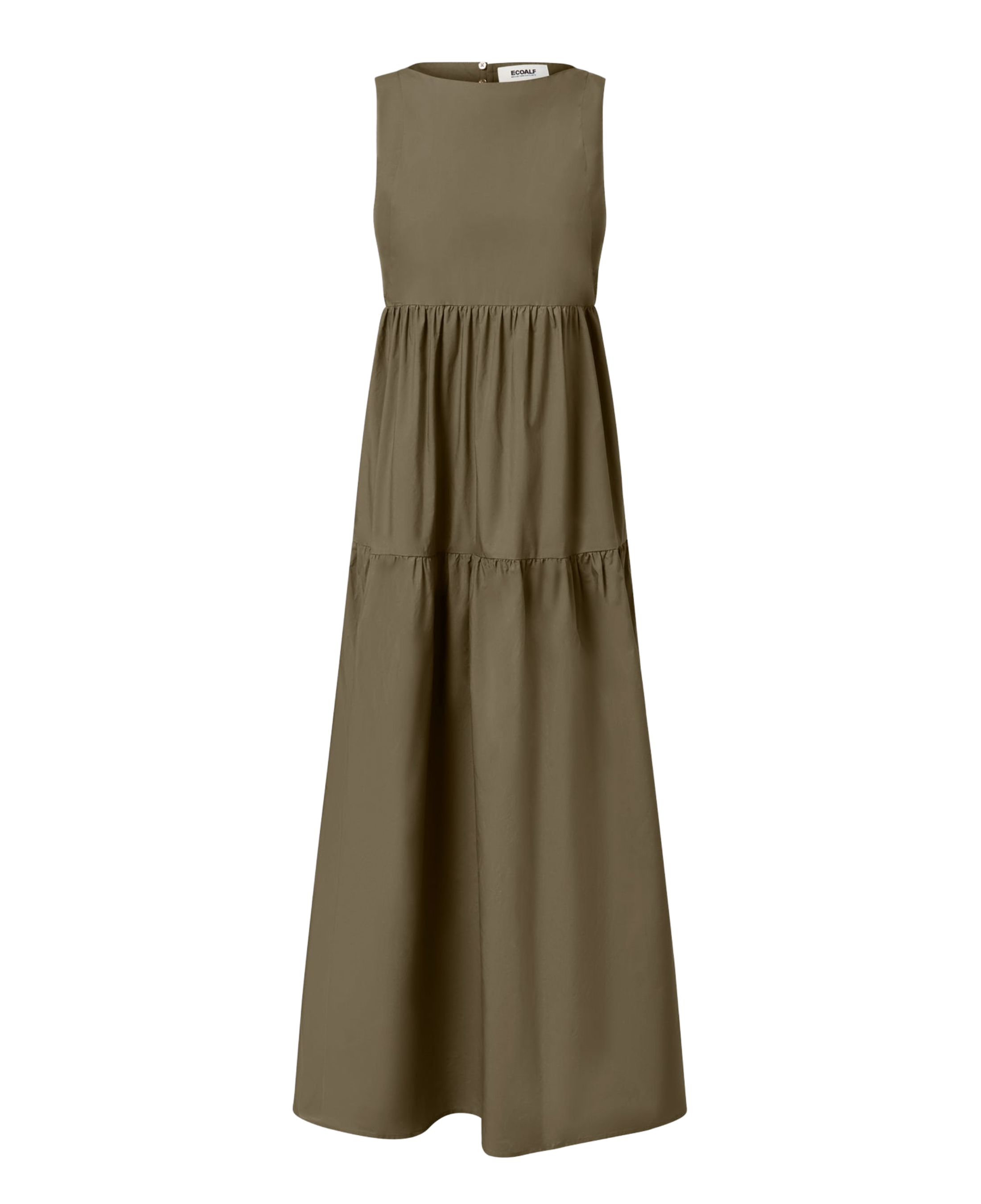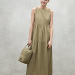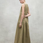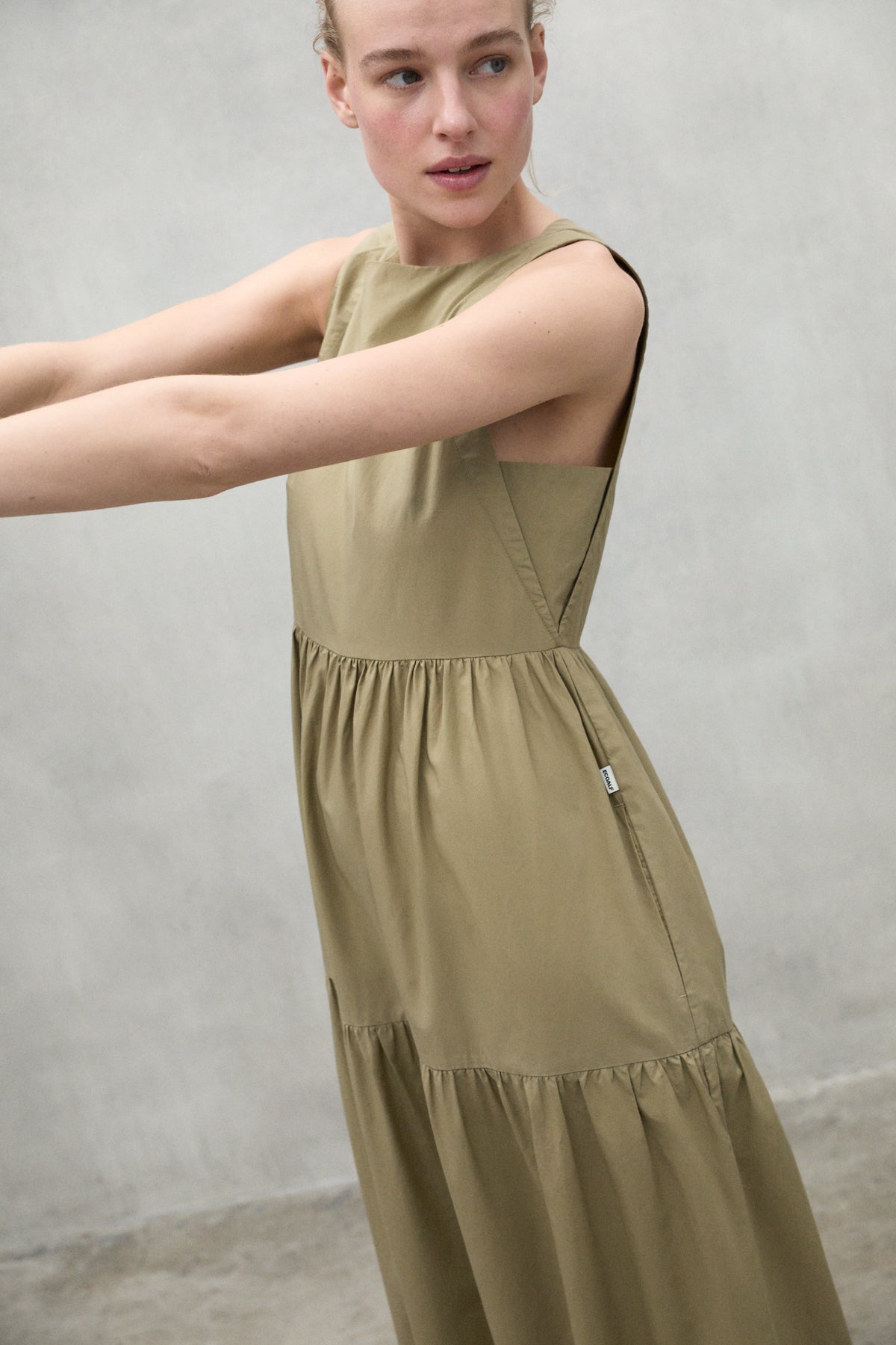 El vestido Bossa, confeccionado en 72% TENCEL™ Modal. Estas fibras provenienen de pulpa de madera de bosques certificados y con procesos de circuito cerrado siguiendo los estándares ambientales más altos. Presenta un fit holgado y un cuello redondo. Sus bolsillos laterales lo convieren en una prenda cómoda y versátil.