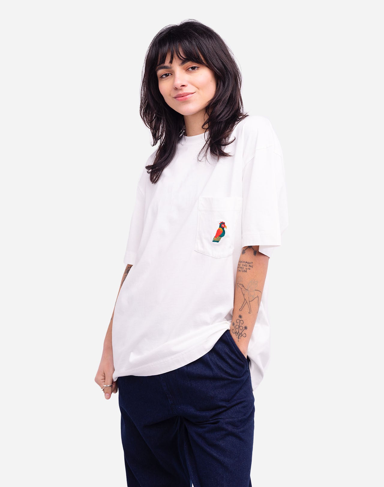 Ilustraciones : bordado en el pecho y serigrafía trasera