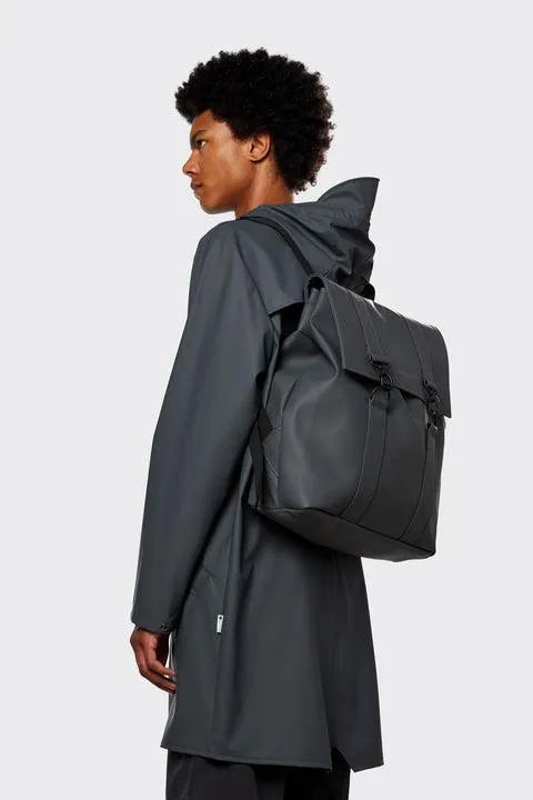 La bolsa MSN está confeccionada con el exclusivo tejido de PU impermeable de Rains, diseñado para brindar resistencia, durabilidad y una sensación de suavidad.