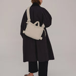 Este bolso versátil puede transformarse fácilmente en mochila, bolso de hombro o handbag, gracias a sus asas acolchadas ajustables. A pesar de su tamaño compacto, tiene capacidad suficiente para llevar todo lo esencial, incluido un portátil de hasta 14”, manteniendo siempre una silueta limpia y moderna.