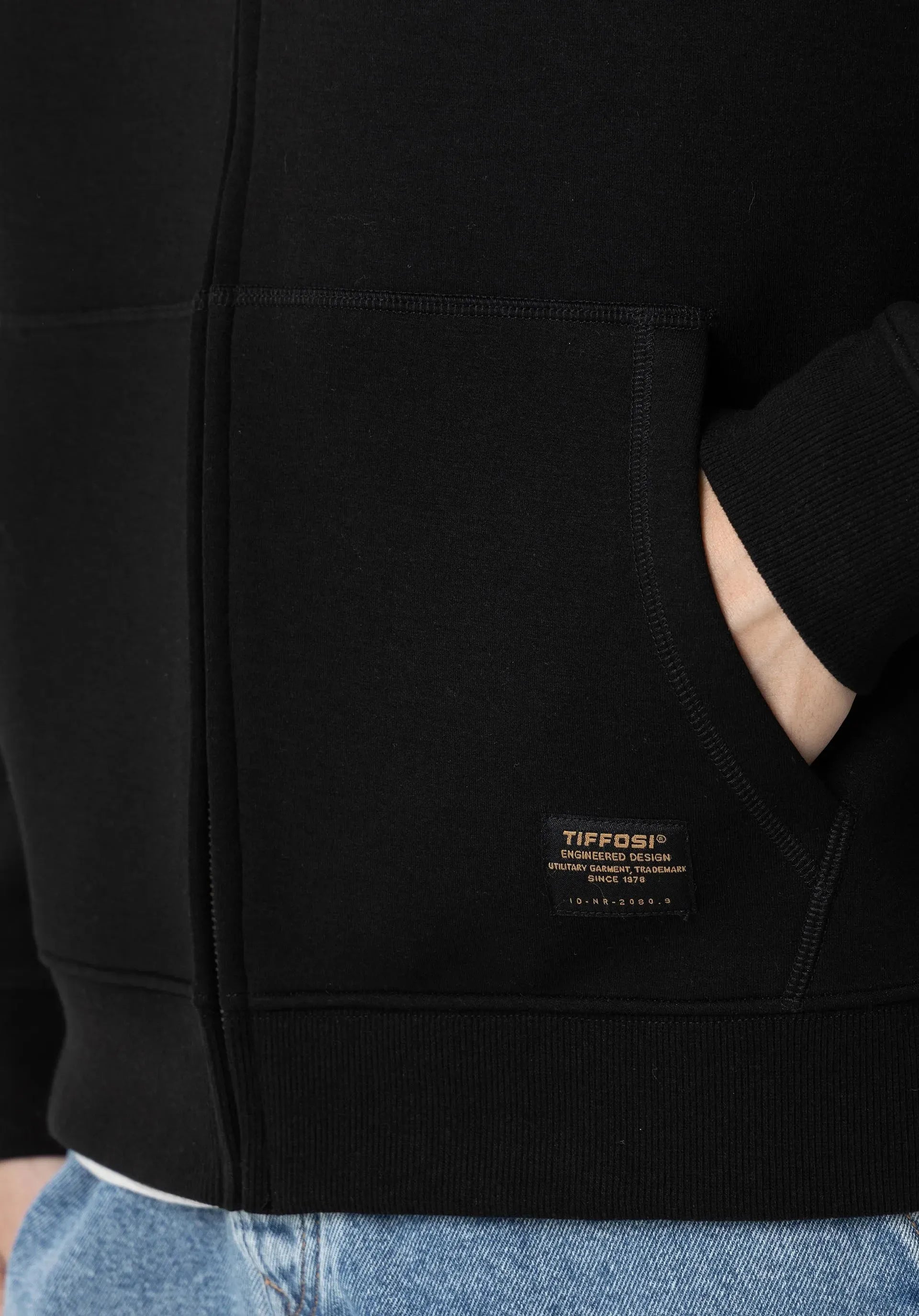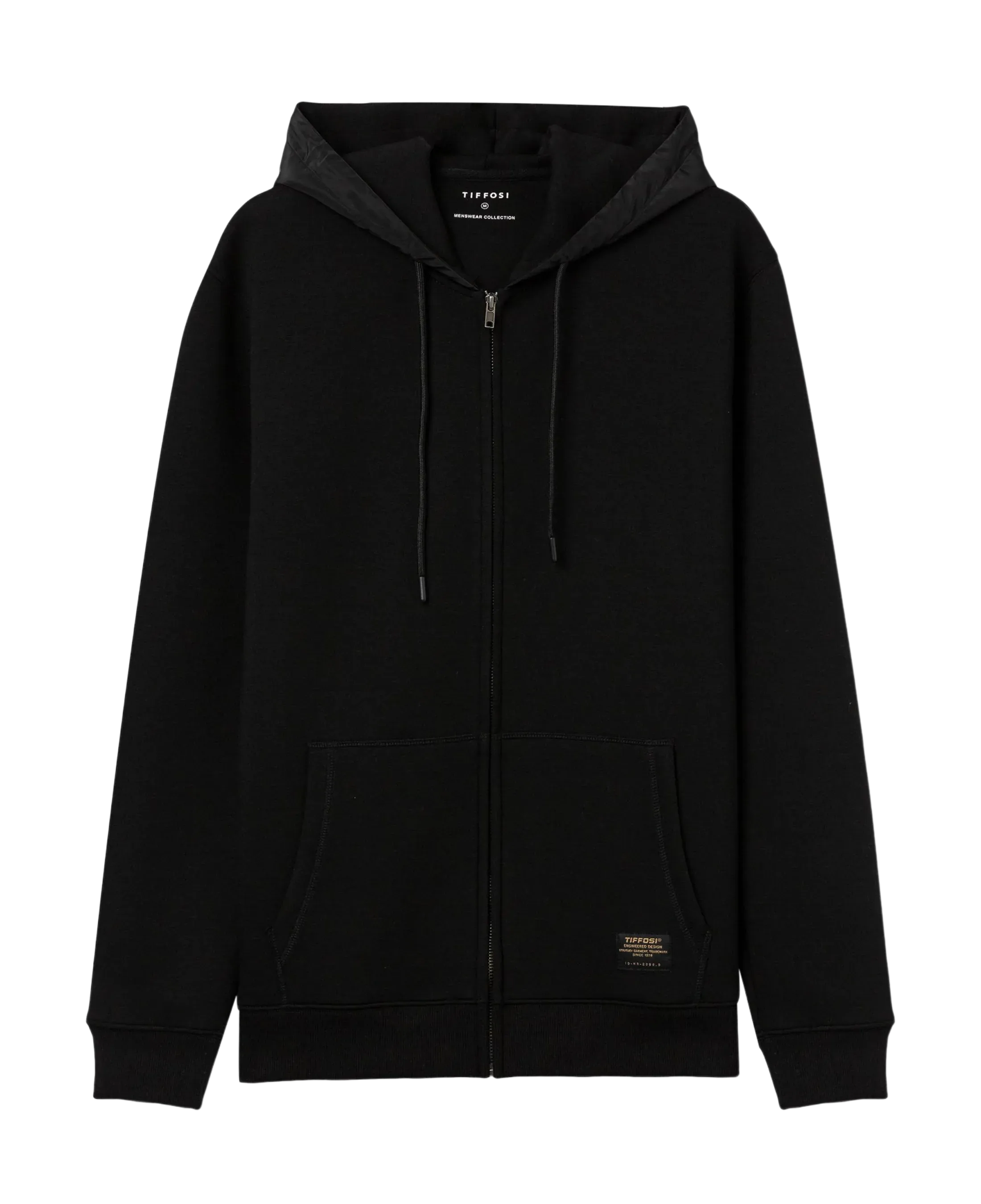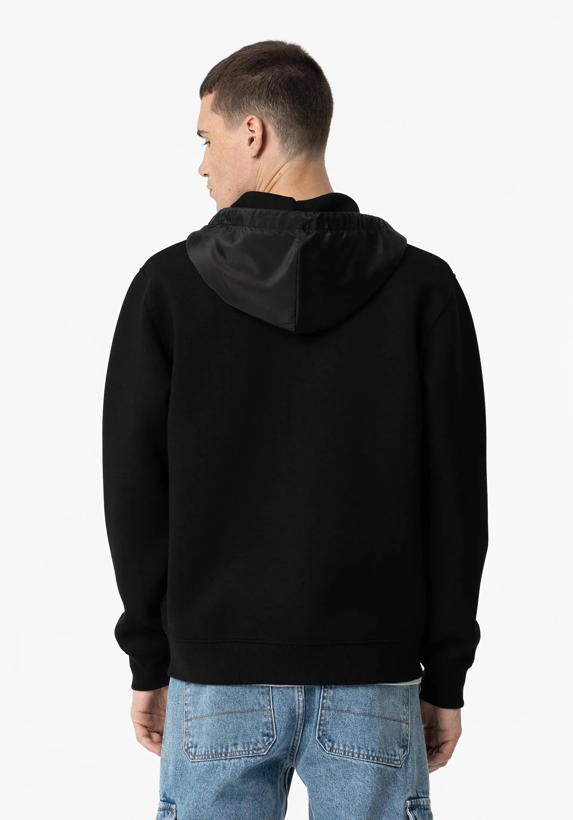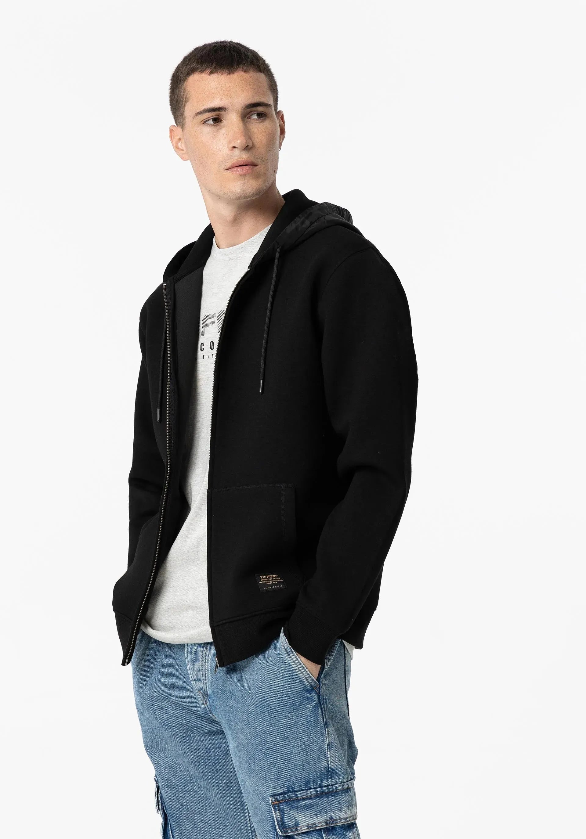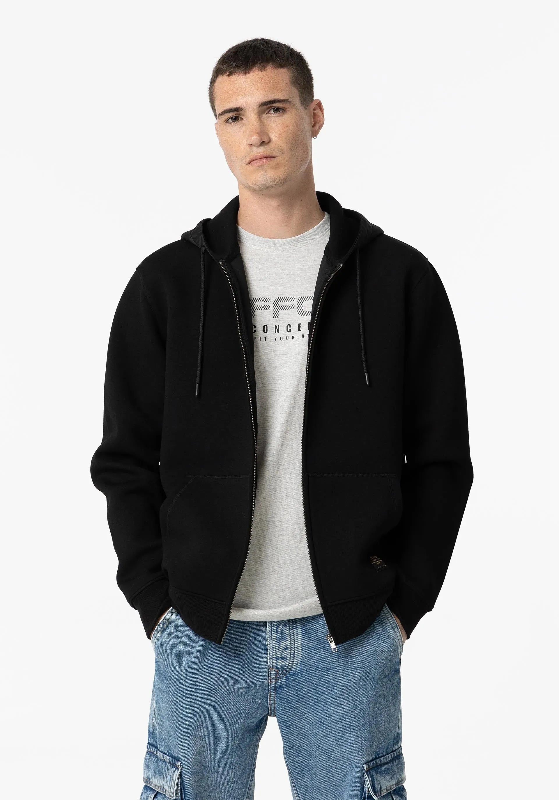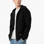 Chaqueta de capucha con cordón ajustable y manga larga. Bolsillos laterales. Cierre frontal con cremallera. Terminaciones de canalé.