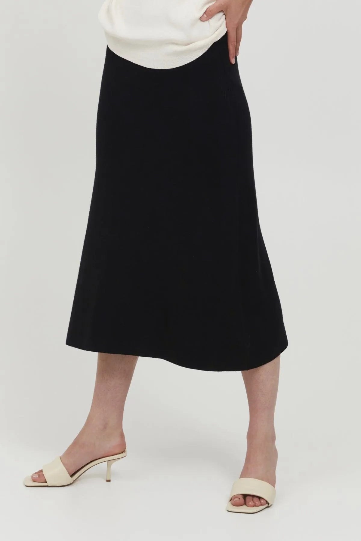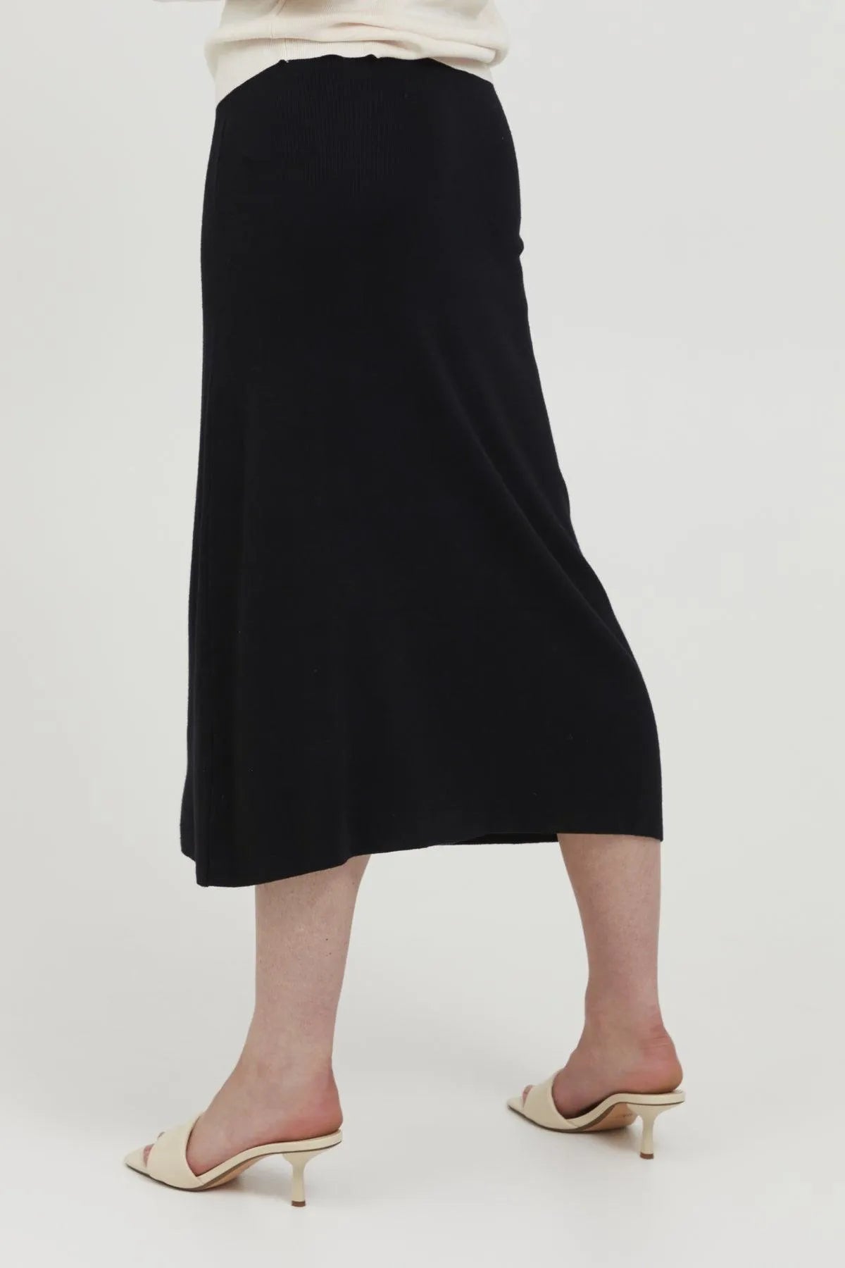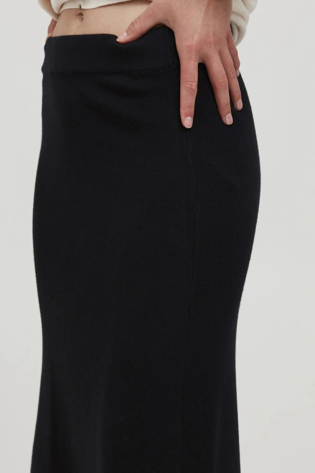 Falda de punto canalé en color negro a juego con su jersey o suéter.