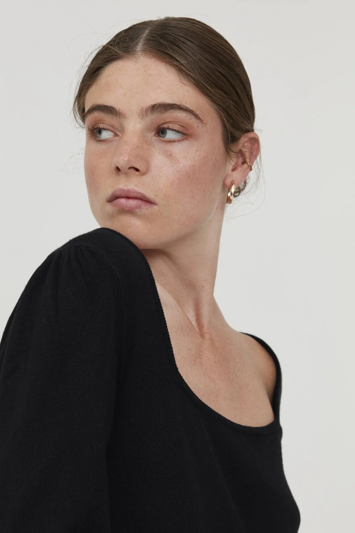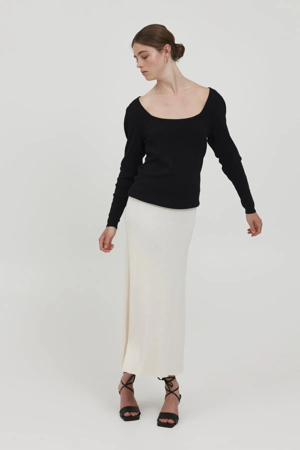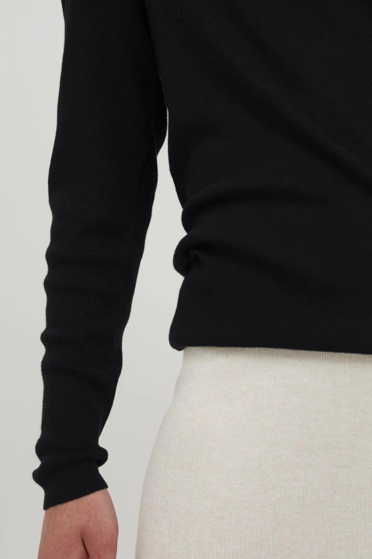 Este jersey o suéter de punto canalé negro combina con la falda Ruvera o como fondo de armario.