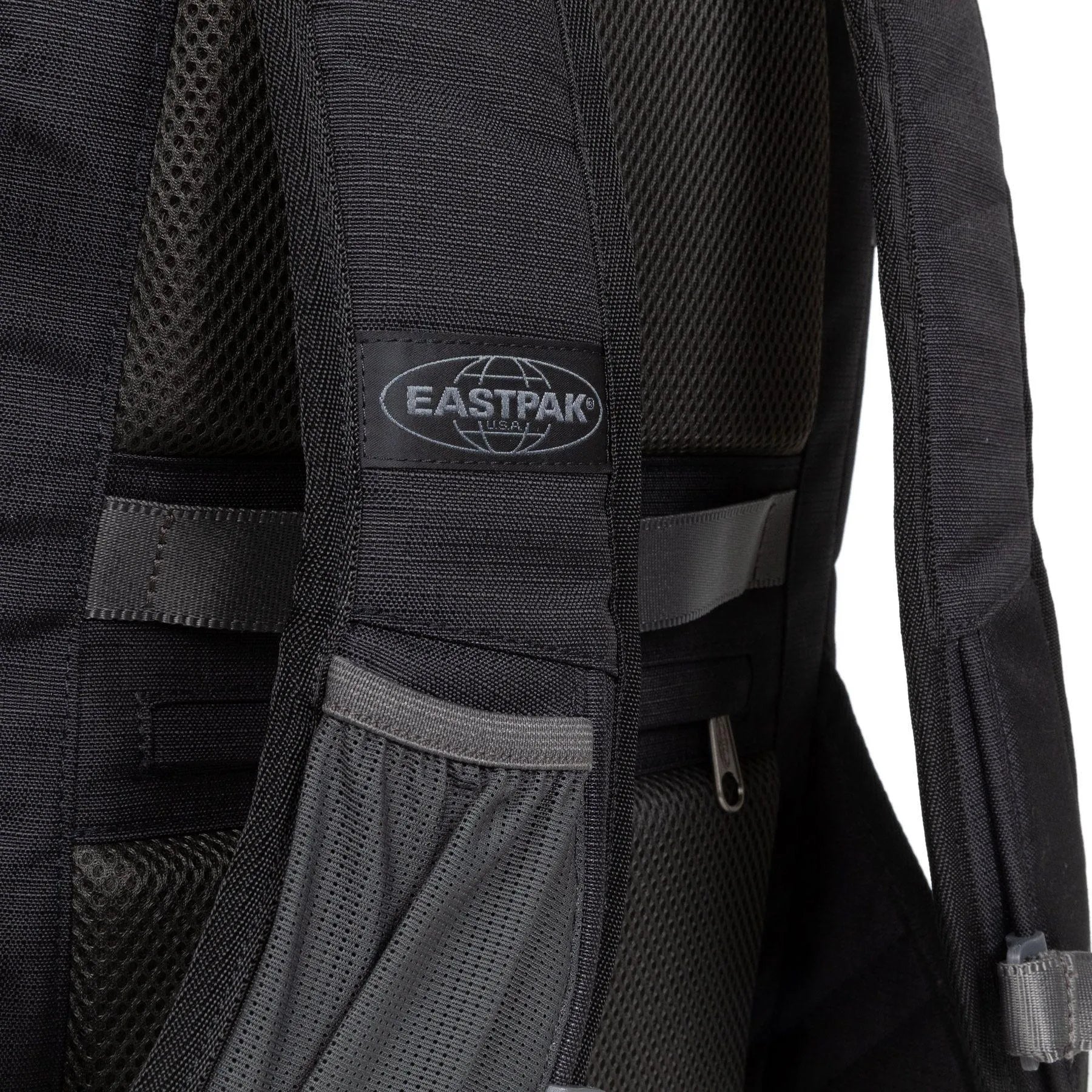 • Portabotellas lateral y mosquetón con la marca Eastpak