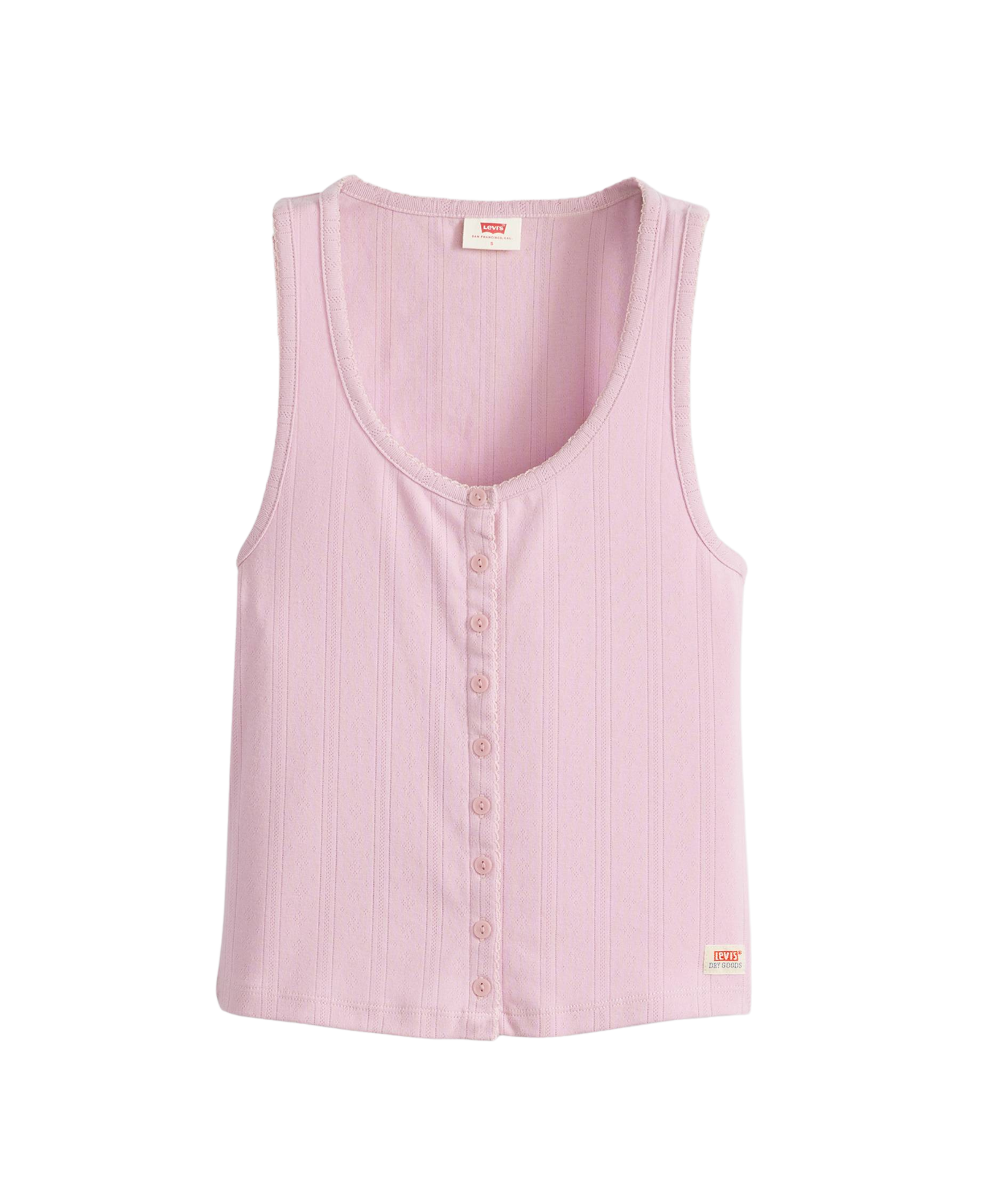 Presentamos la camiseta sin mangas Pointelle: estampada con nuestra distintiva etiqueta Dry Goods en el bajo izquierdo y una silueta ajustada, seguro que no tardarás en combinarla con todos tus denim.
