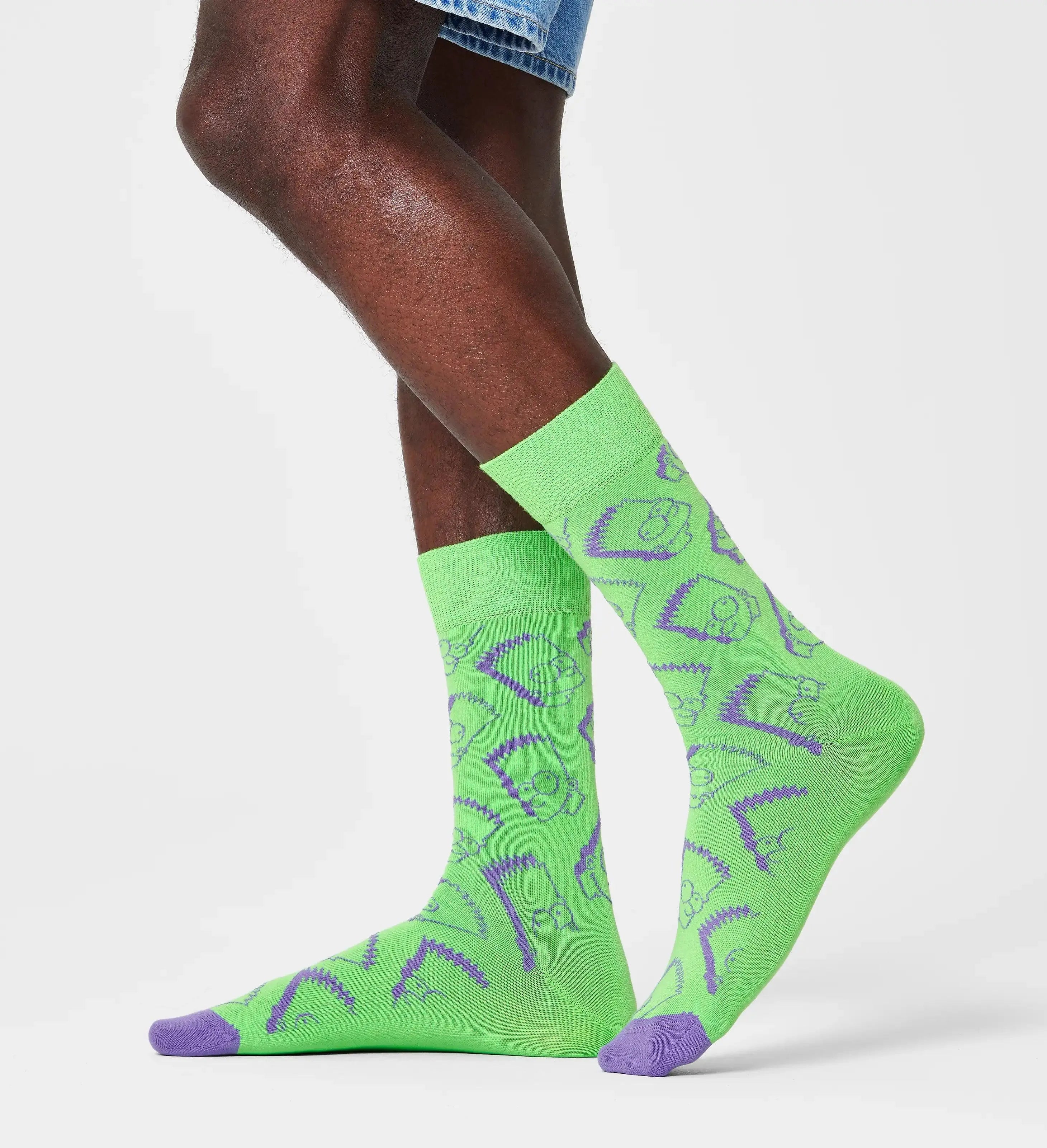 ¿Neones ácidos + la cara de tu bromista favorito, Bart Simpson? ¡Estos son tus calcetines favoritos para esta temporada! Colección especial Edición Los Simpson. Fabricados en algodón orgánico.