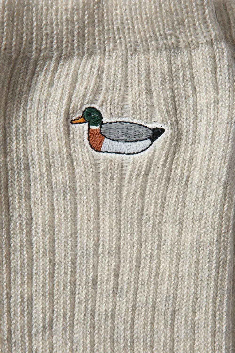 Calcetines de algodón de color gris. Con un ligero soporte elástico y completados con el logotipo del pato bordado.