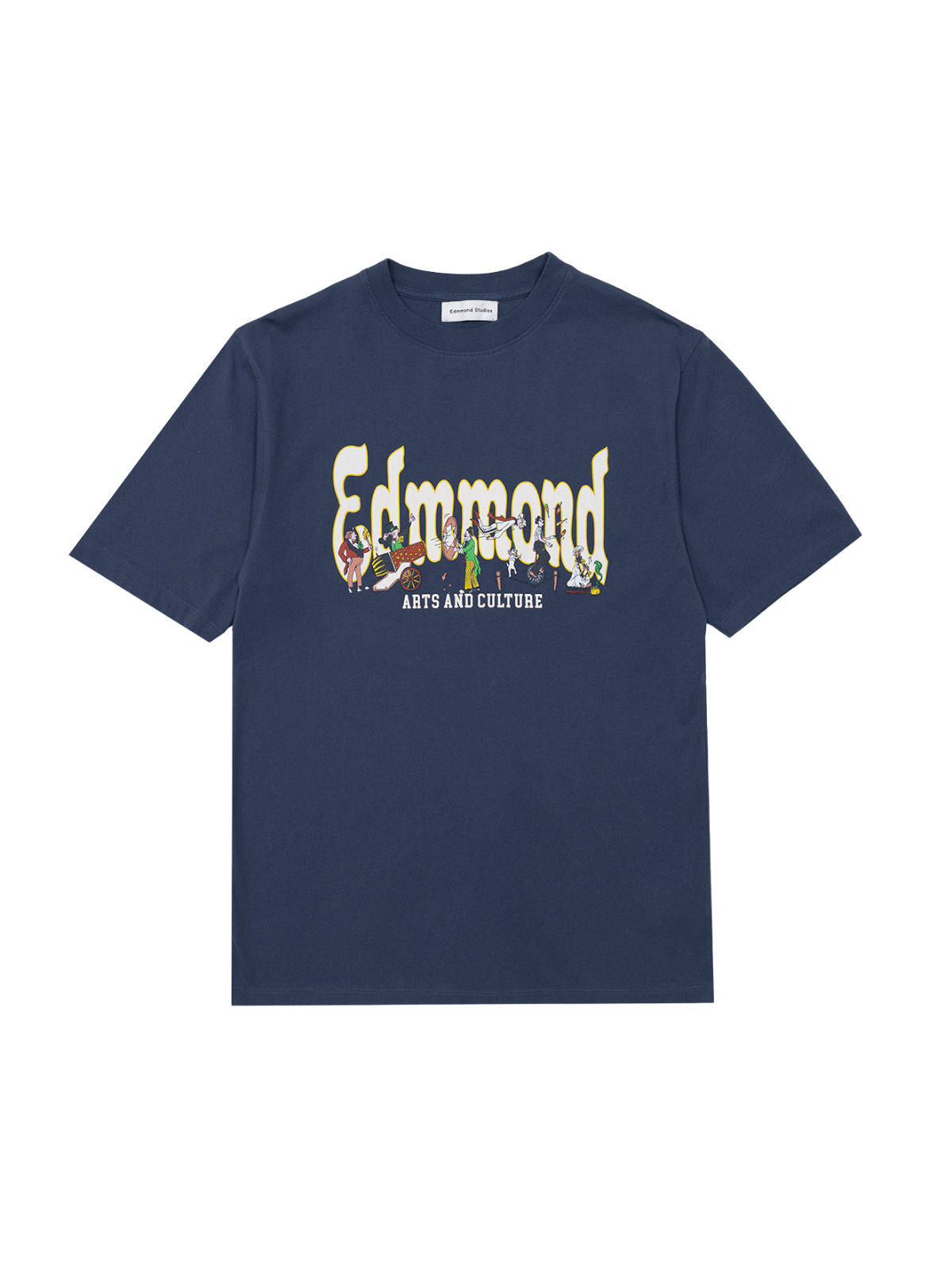 Camiseta de manga corta azul con estampado frontal. Confeccionada en algodón orgánico 100%. Fabricada en Portugal