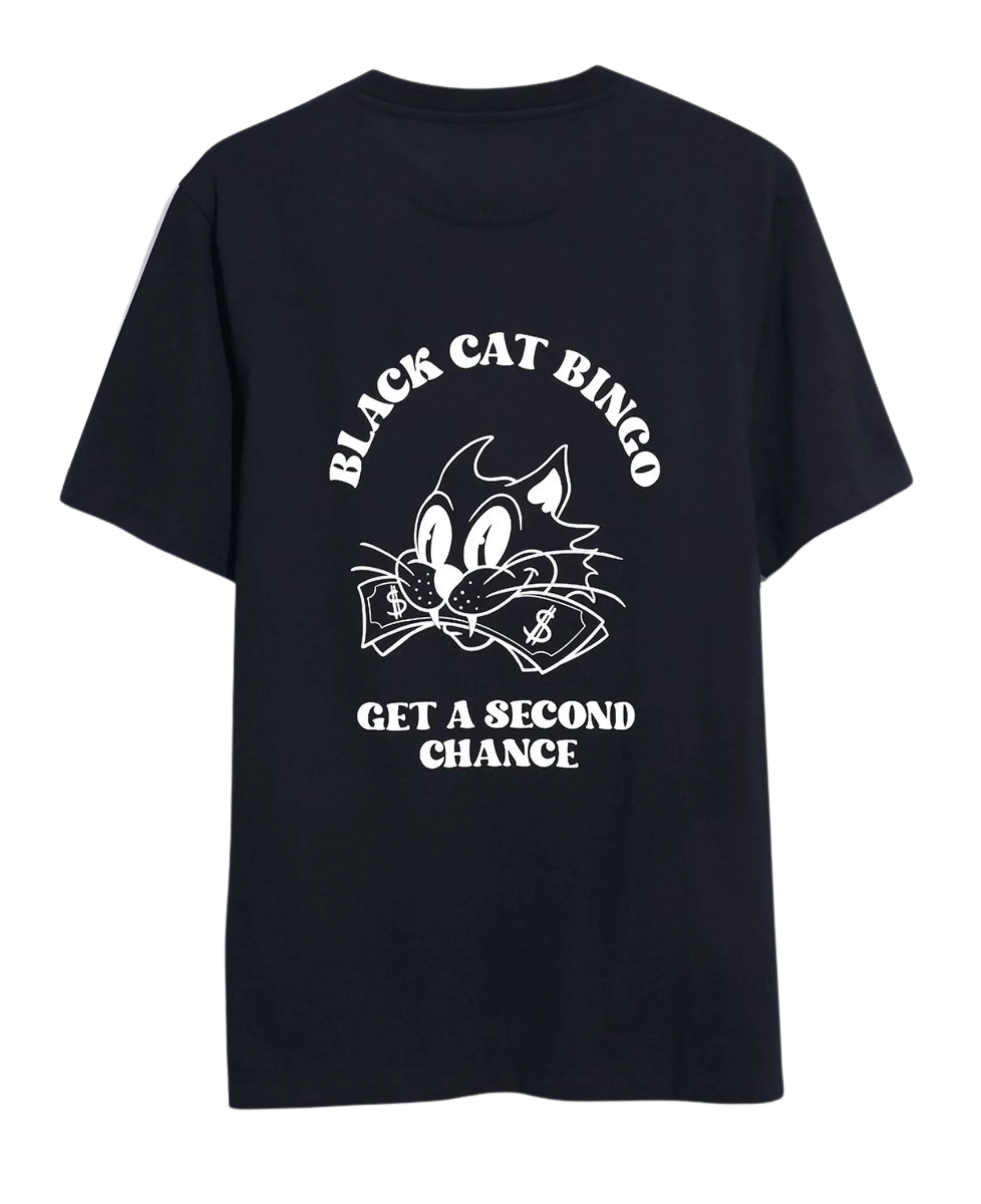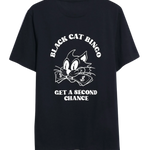 Presenta un gráfico de gato en la parte delantera y trasera, tomado de nuestro concepto