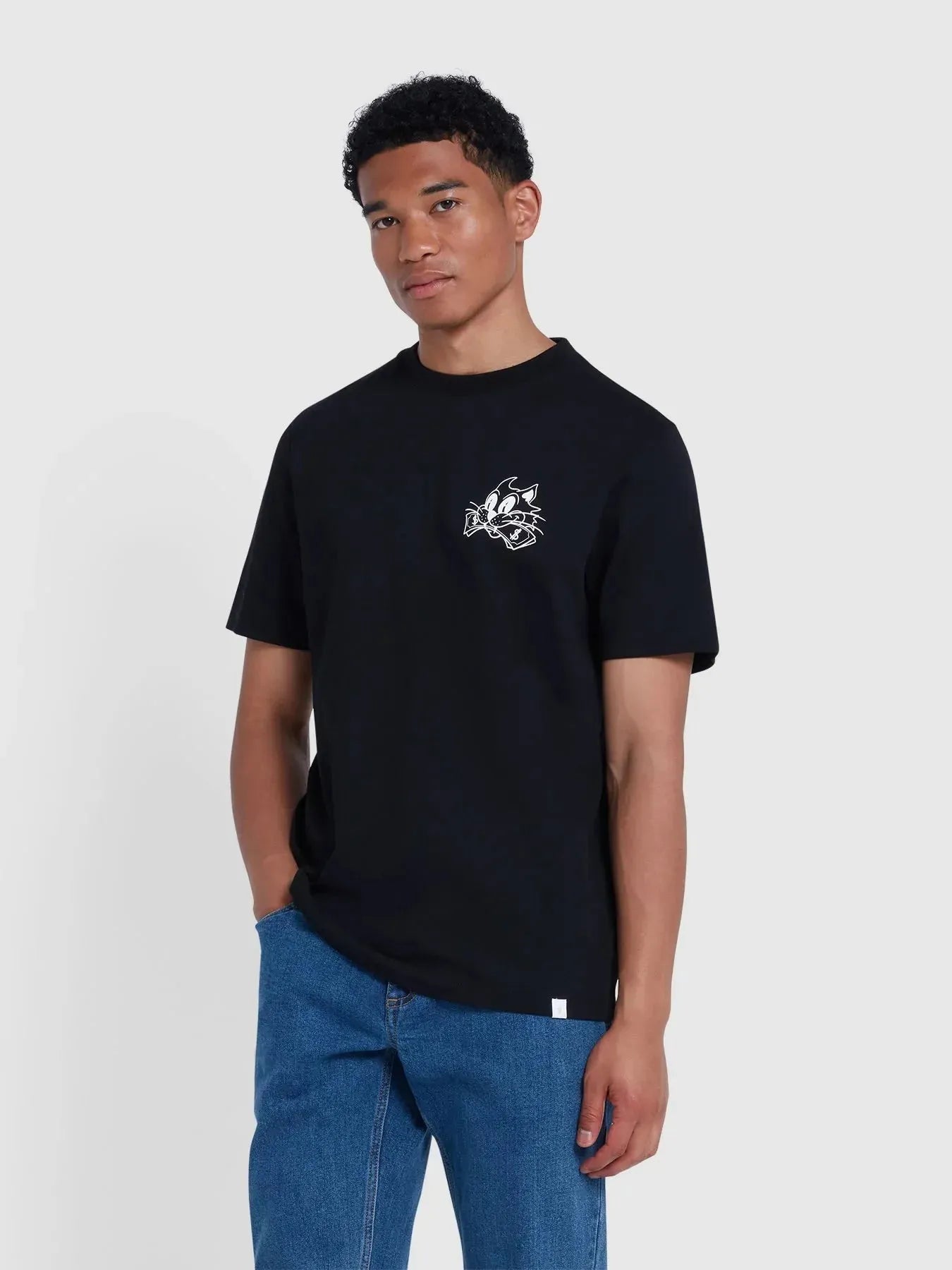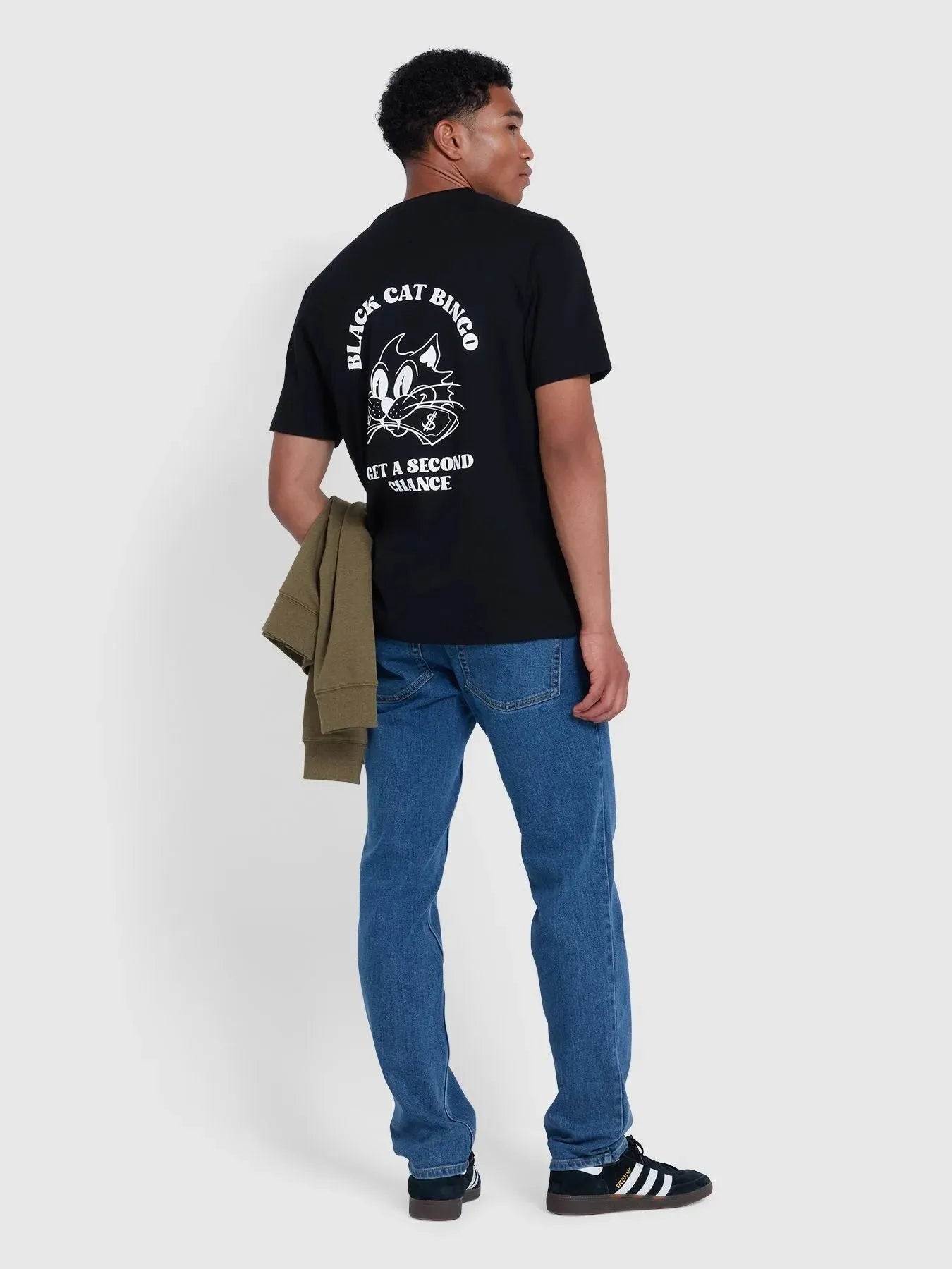 Camiseta Farah Jasper Regular Fit Camiseta Gráfica De Algodón Orgánico En Negro