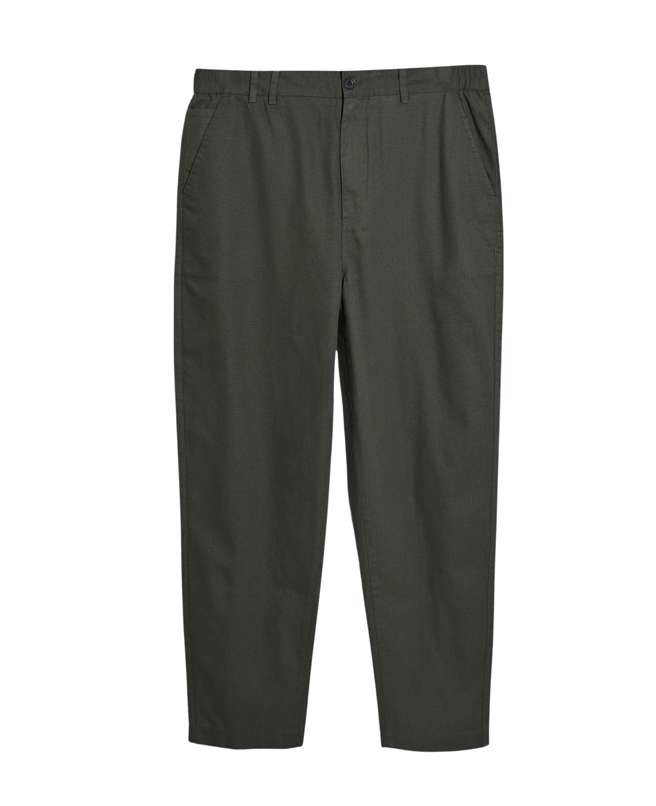 Diseñado para sentarse a media cintura. Holgado en los muslos y estrecho en el bajo