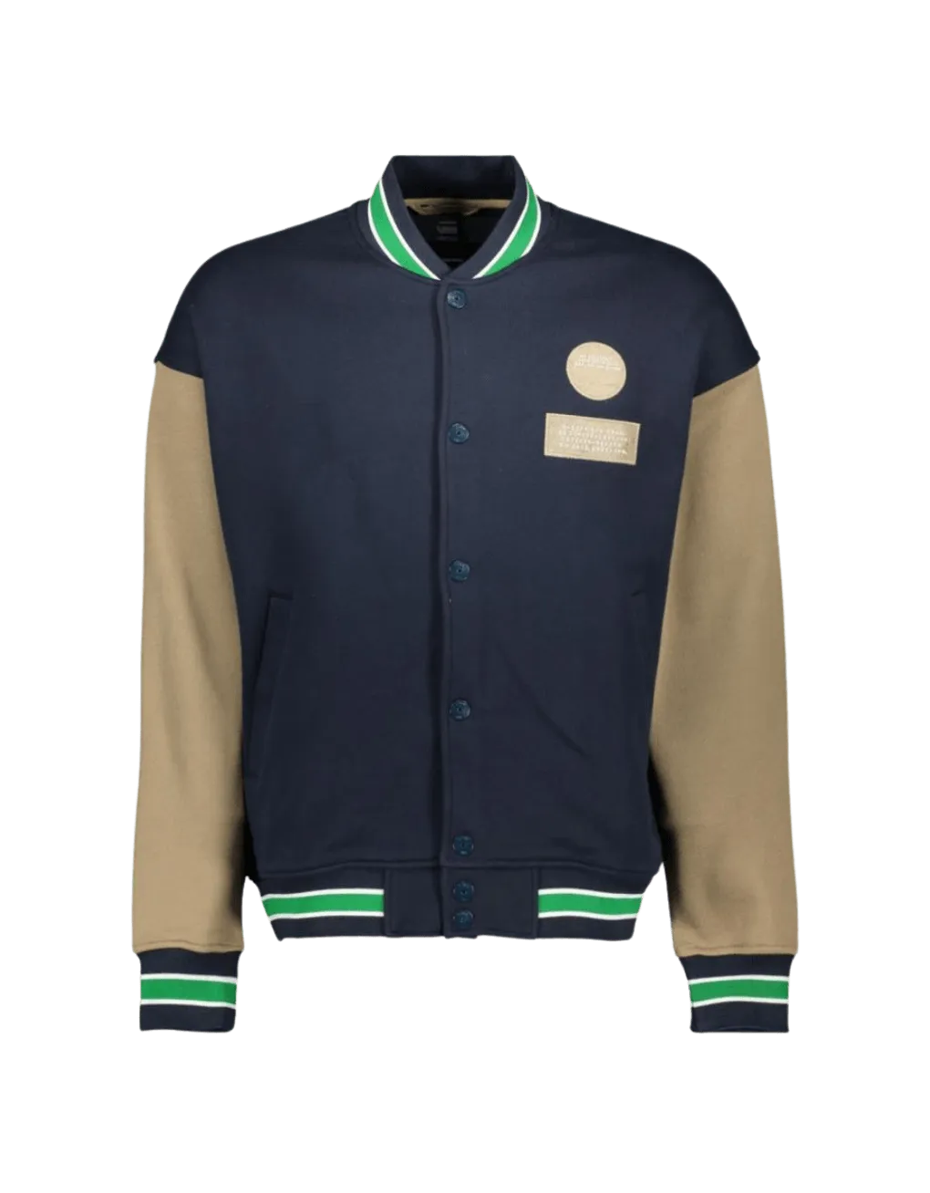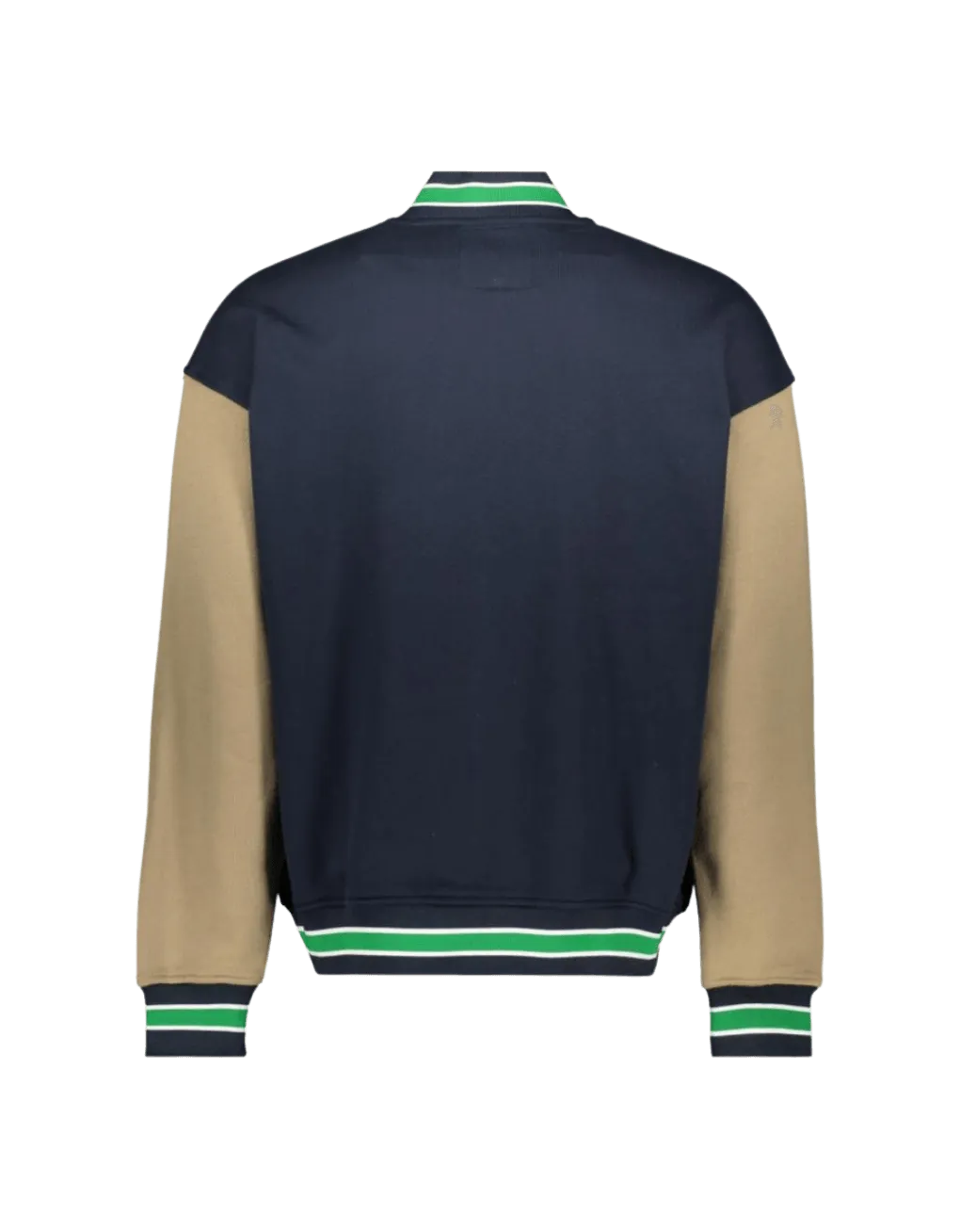 La sudadera tipo chaqueta Bomber Loose tiene un corte holgado y bordes acanalados con un motivo de rayas. El modelo se cierra con botones a presión en la parte delantera. Esta chaqueta abotonada luce bolsillos con ribete y botón a presión oculto en la cintura. Póntela sola o encima de una camiseta como si fuera una chaqueta.