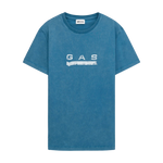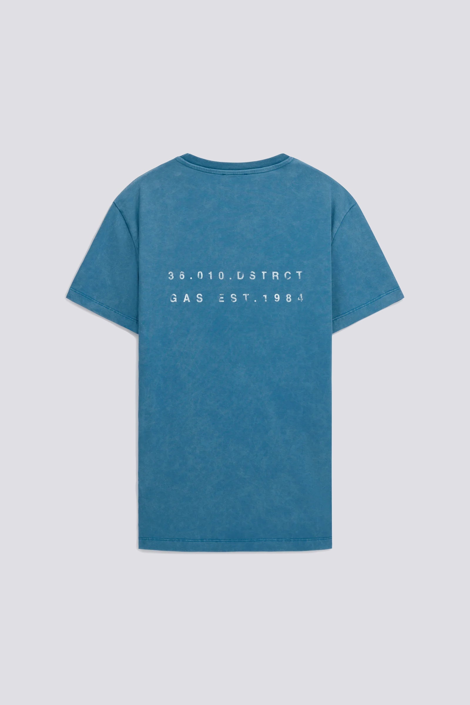 Camiseta de hombre de manga corta, corte slim, confeccionada en jersey de algodón stretch, personalizada con un estampado de logo a base de agua con un look vintage aplicado tanto en la parte delantera como en la trasera. Una prenda icónica que combina un toque vintage con un auténtico estilo urbano.