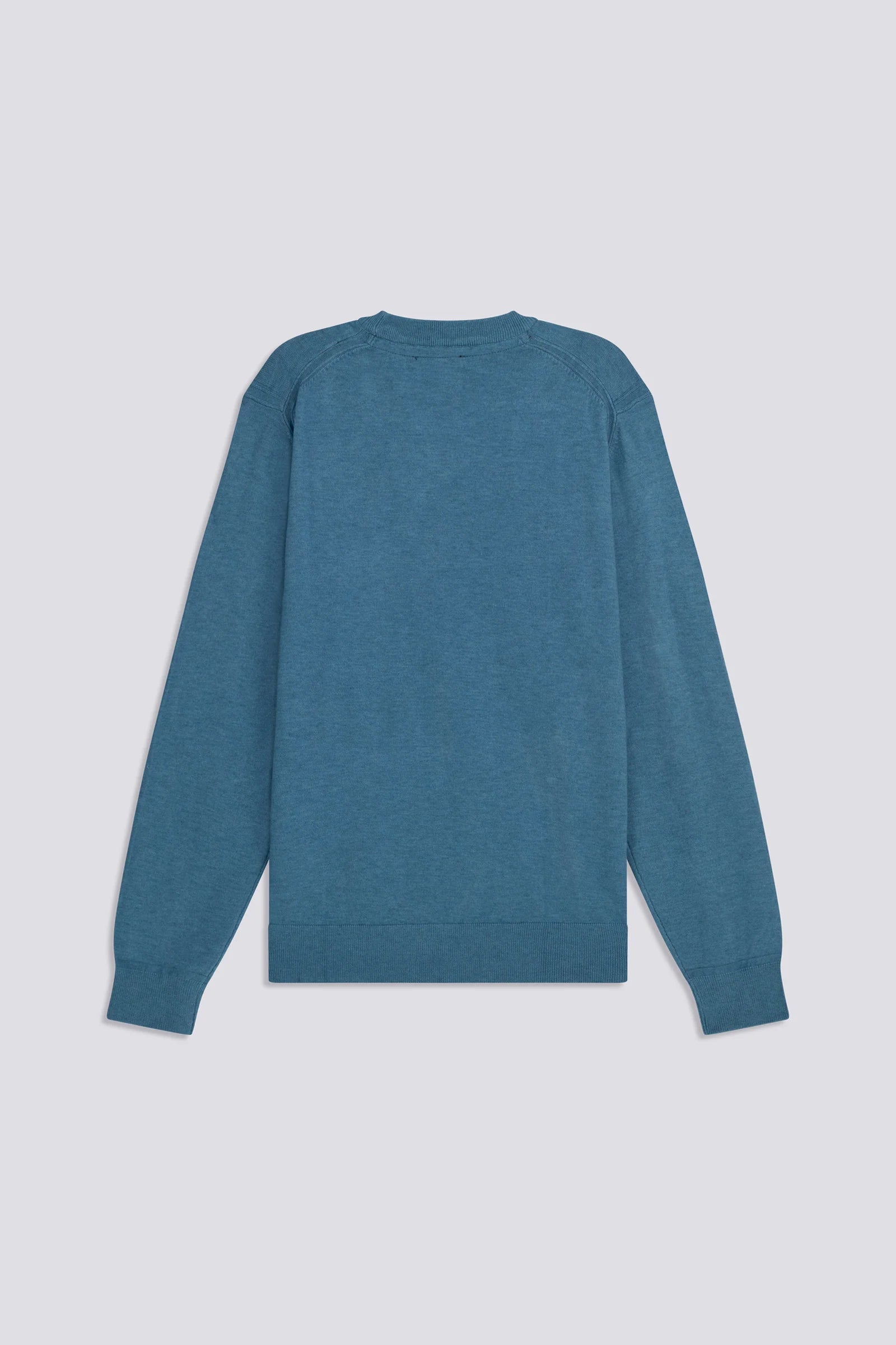 Jersey de punto de corte slim fit con cuello redondo, confeccionado en hilo de calibre 12 que resulta suave y ligero al tacto. Incluye un ribete a rayas en la parte posterior del cuello y bordado tonal del logo en el pecho, que aportan un acabado refinado y discreto. El tono Light Blue le brinda un carácter versátil que se adapta tanto a looks casual-chic como a propuestas más estructuradas.