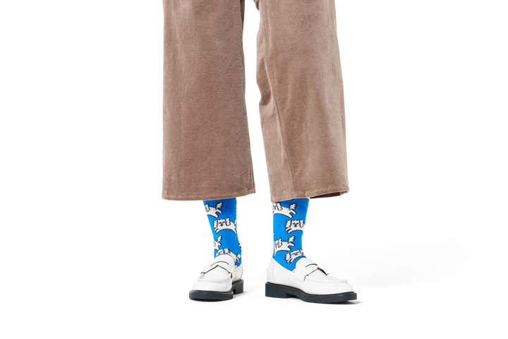 Descubre el divertido carácter de los calcetines Cloud Dog Sock de Happy Socks, ideales para quienes buscan un toque lúdico y original en su look diario. Este modelo destaca por su patrón repetido de nubes en forma de perrito — o ¿perritos que flotan como nubes?, dejando espacio a la imaginación — sobre un fondo azul suave, lo que aporta un aire relajado y creativo a cualquier conjunto. Su estilo desenfadado lo convierte en un accesorio perfecto tanto para outfits casuales como para regalar a quienes aprecian los detalles con personalidad.