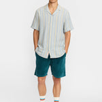 La camisa incorpora un cuello cubano abierto, característico de este tipo de prendas, que refuerza su estética relajada y veraniega.