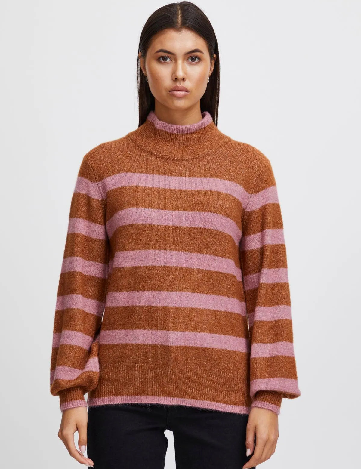 Jersey de Mujer a Rayas ICHI Mafa Chateau Rose - ECRU