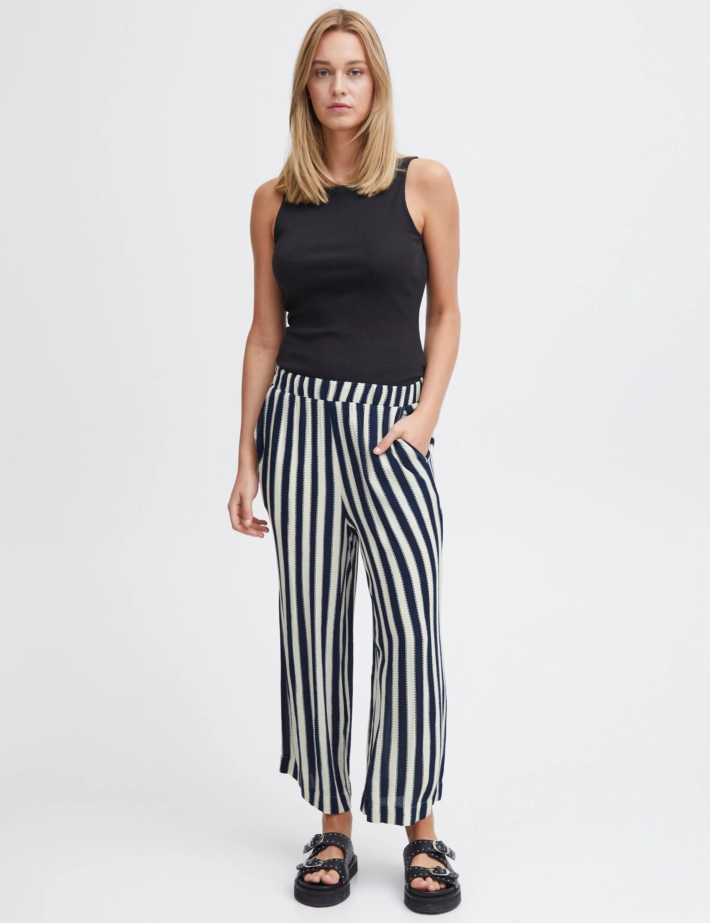 Pantalones ICHI Marrakech Total Eclipse Stripes - ECRU