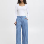 Estos Pantalones ICHI Barcy están hechos con 100% algodón para brindar comodidad y transpirabilidad. Su corte holgado y cintura alta proporcionan un ajuste favorecedor, mientras que su largo recortado y pierna ancha crean un estilo moderno y elegante. Ideal para cualquier ocasión.