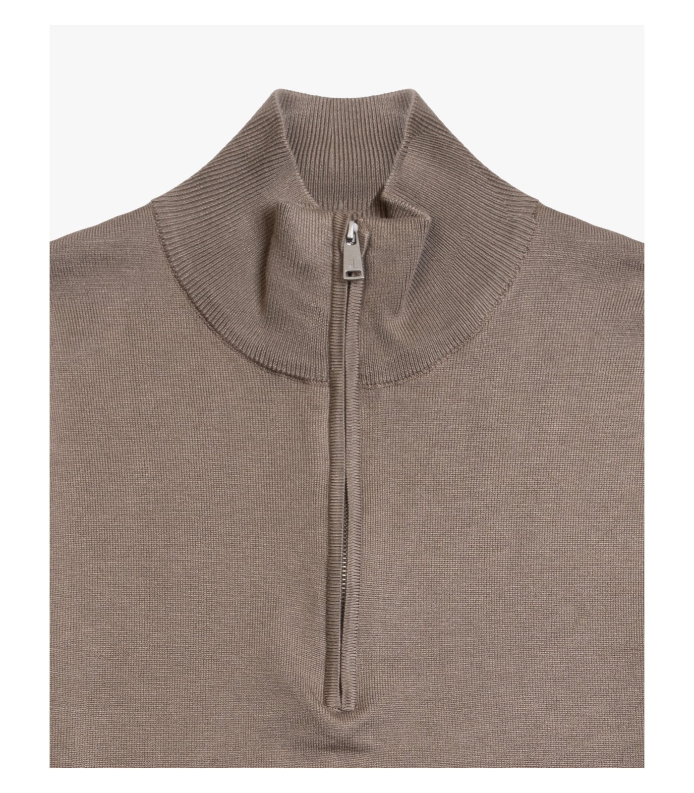 Jersey de punto con silueta regular y cuello alto tipo “a imbuto” que puede llevarse cerrado para mayor abrigo o parcialmente abierto para un look más relajado. Presenta cierre de cremallera en el centro del pecho, puños y bajo con canalé reforzado, y un tejido de textura suave y compacta ideal para entretiempo o capas bajo abrigo. Disponible en una gama de colores seleccionados que facilitan la combinación con denim, chinos o pantalones sastre.
