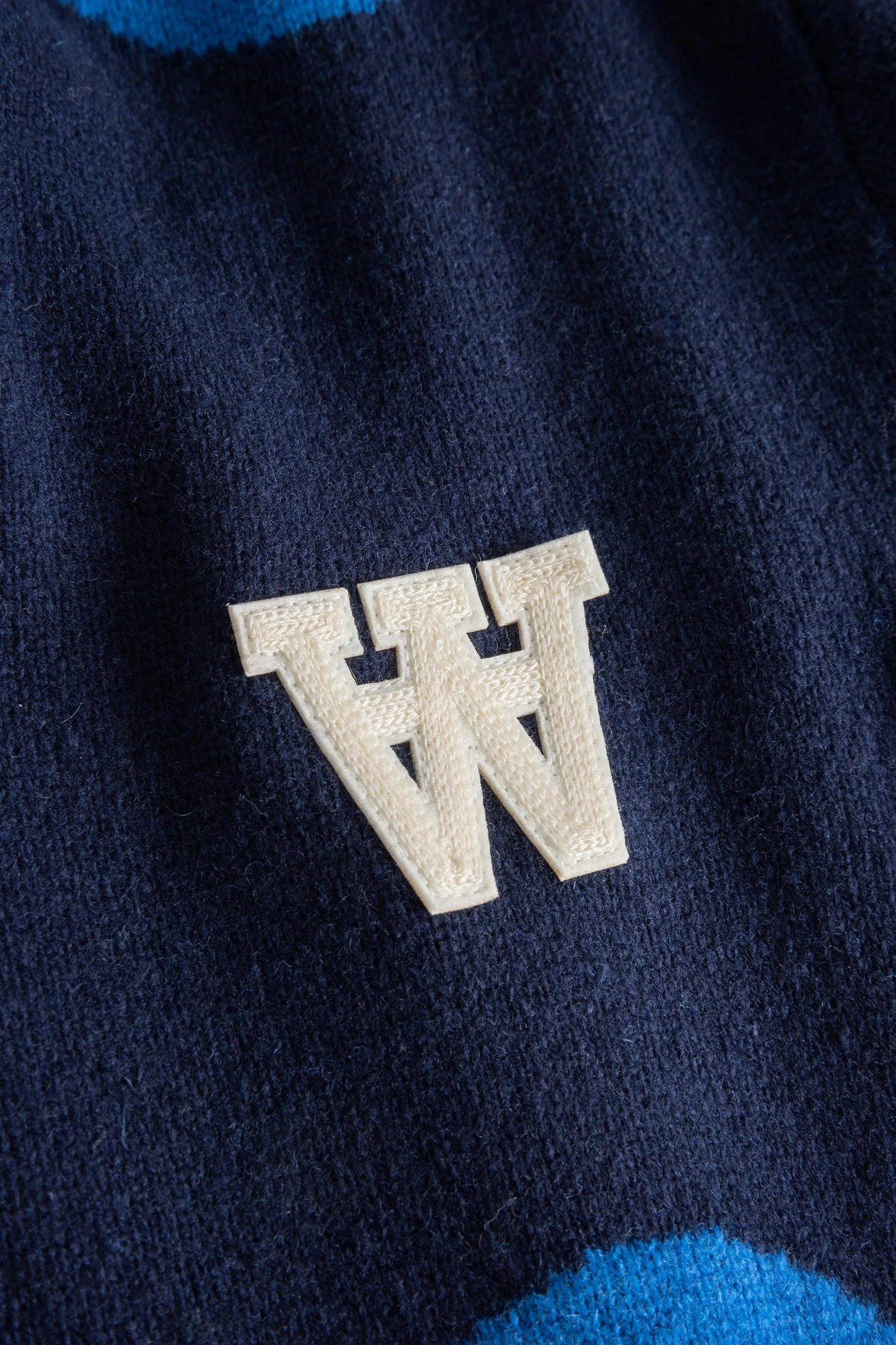 Confeccionado en lana de cordero 100% italiana, este jersey de corte relajado se ha tejido en punto jersey de galga 7 para ofrecer un tacto acogedor. El estilo se completa con botones de nácar.