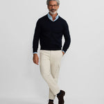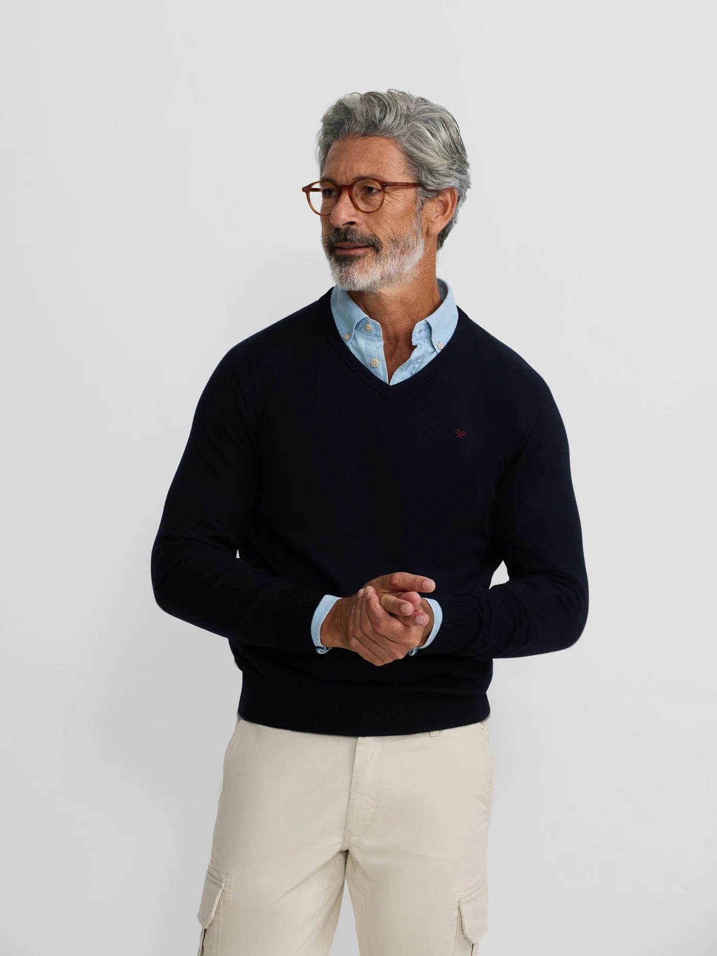 El Jersey Classic de Silbon, con cuello pico y mangas largas, combina tradición y estilo con una confección premium. Fabricado en una mezcla de algodón BCI (iniciativa sostenible) y cashmere, ofrece suavidad, confort y un acabado refinado.