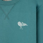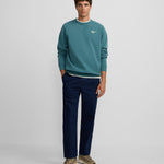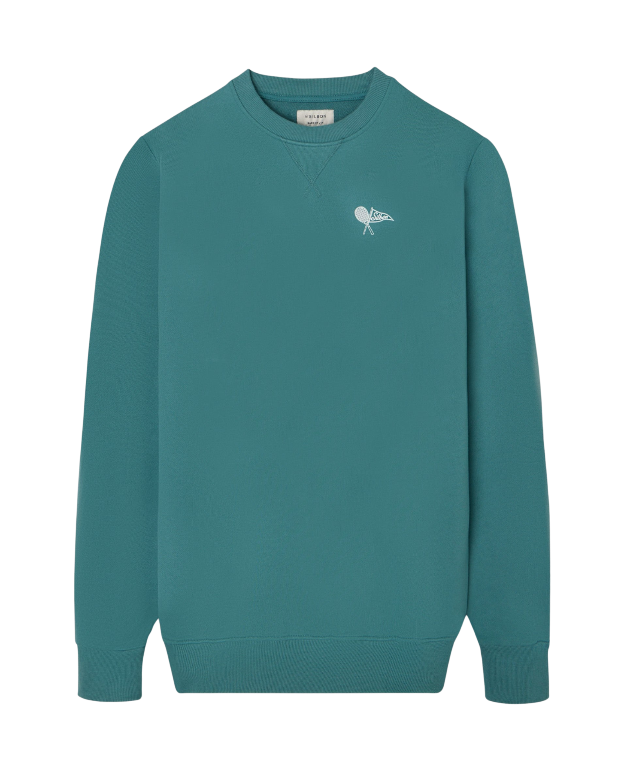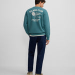 El tono petróleo es profundo y versátil, y la pieza se distingue por un estampado de letras en contraste color beige con el mensaje “Athletic Dept”, que aporta identidad sin ser excesivo. Presenta cuello redondo, mangas largas con remates en puño y cintura elástica, lo que refuerza su carácter casual pero cuidado. Fabricada en Portugal, lo que garantiza un buen acabado en costuras y materiales.