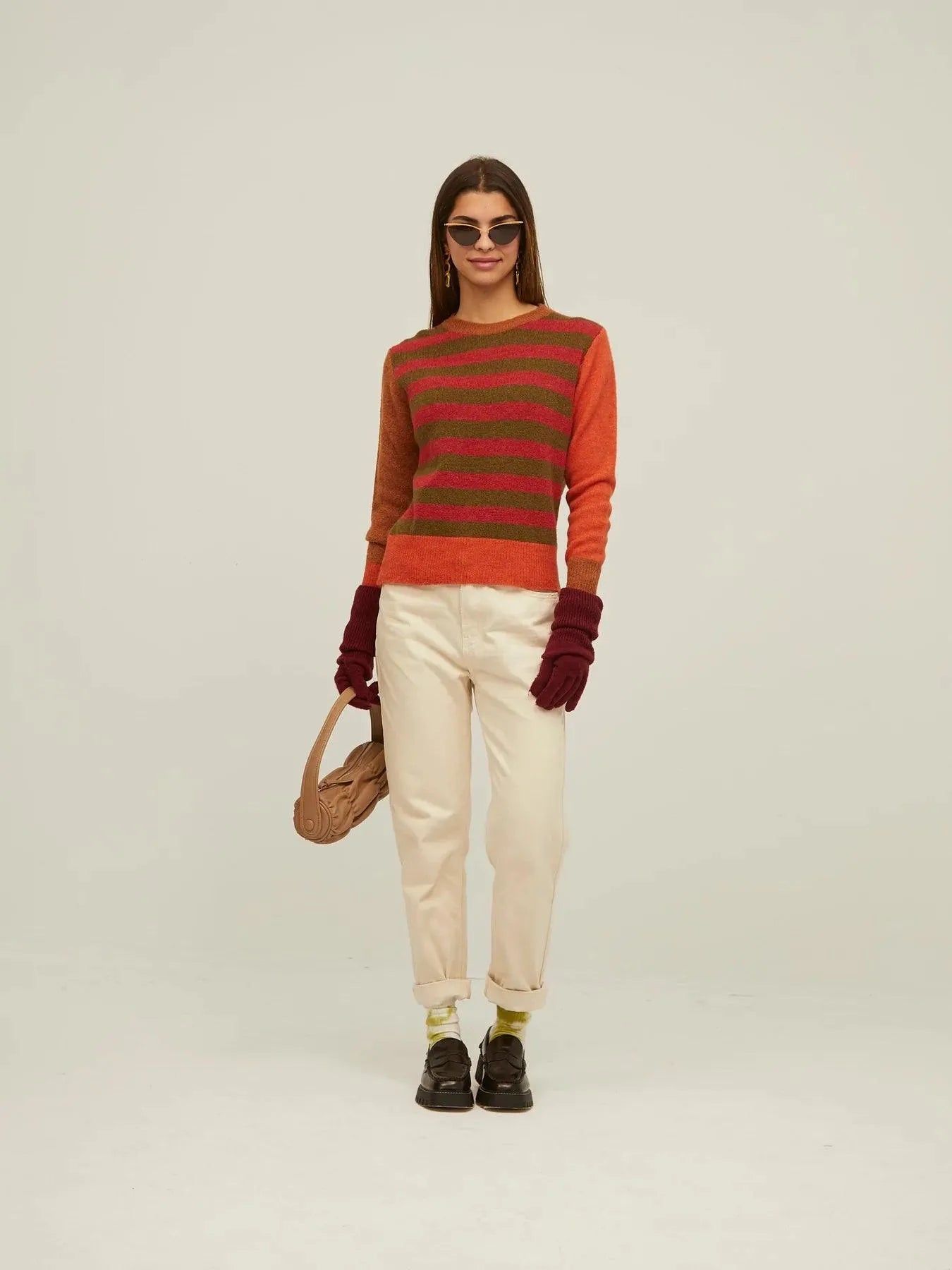 Jersey de rayas, corte skiny y cuello redondo en estampado Teja.