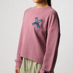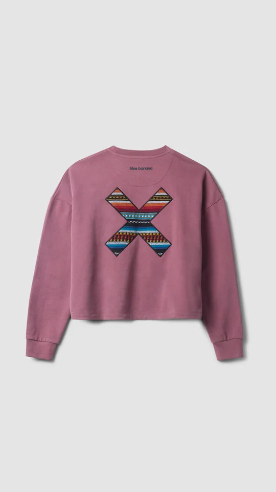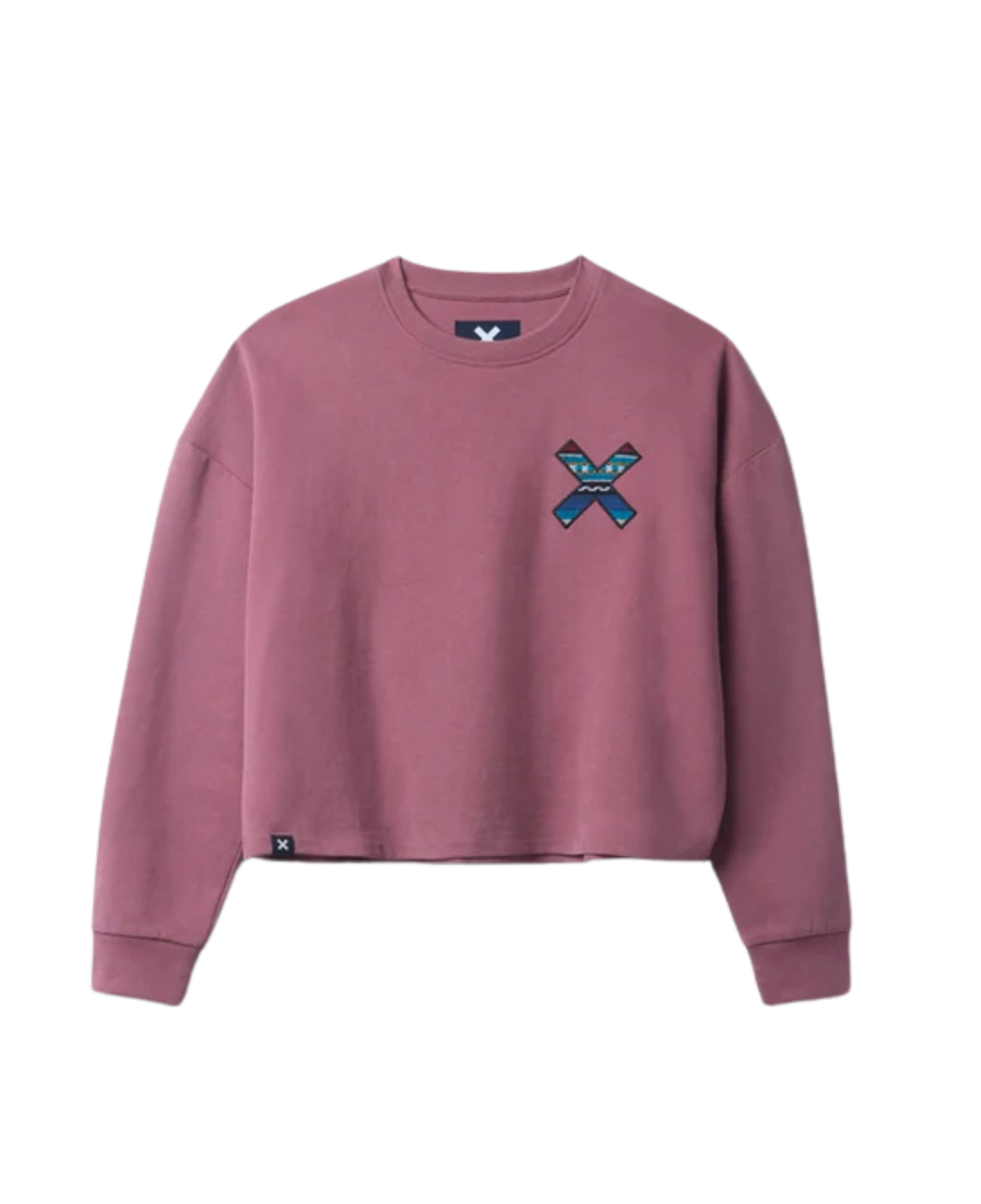Sudadera con nuestra clásica X bordada: delantera en el pecho y trasera en la espalda. Sin cardar para un resultado más veraniego. Confeccionada con algodón 100% orgánico y corte crop.