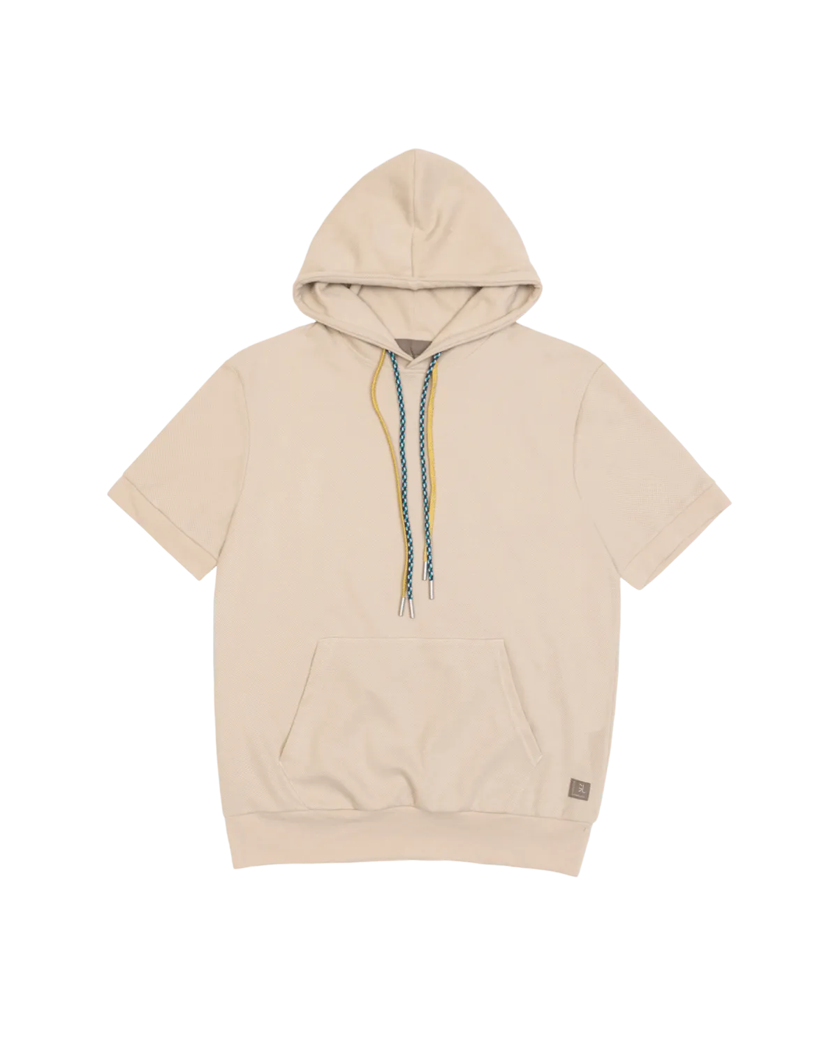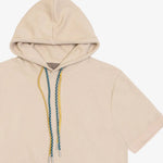 Felpa manga corta beige con gorro.