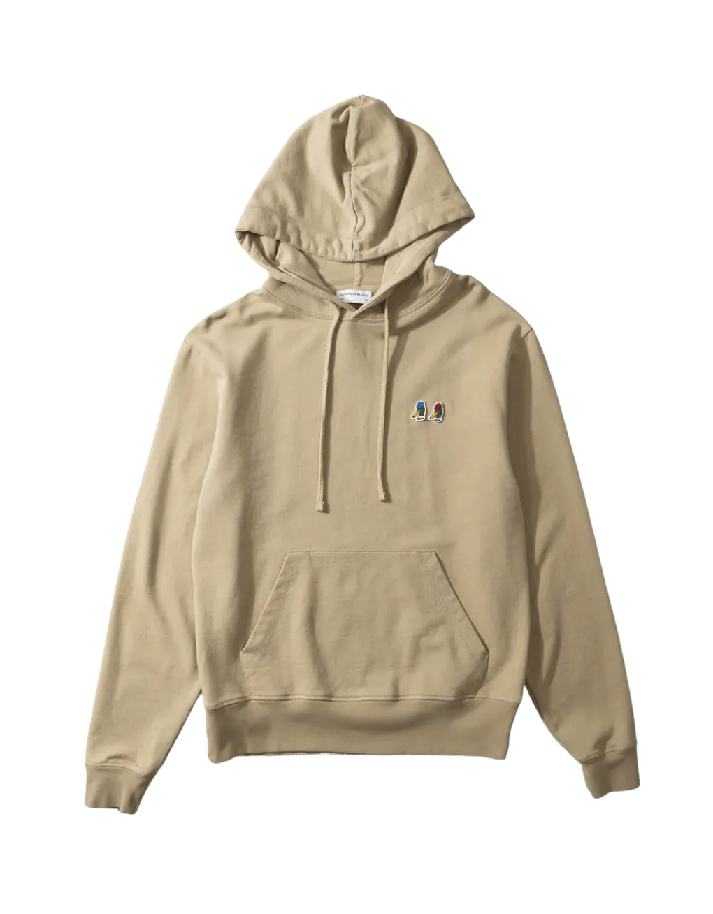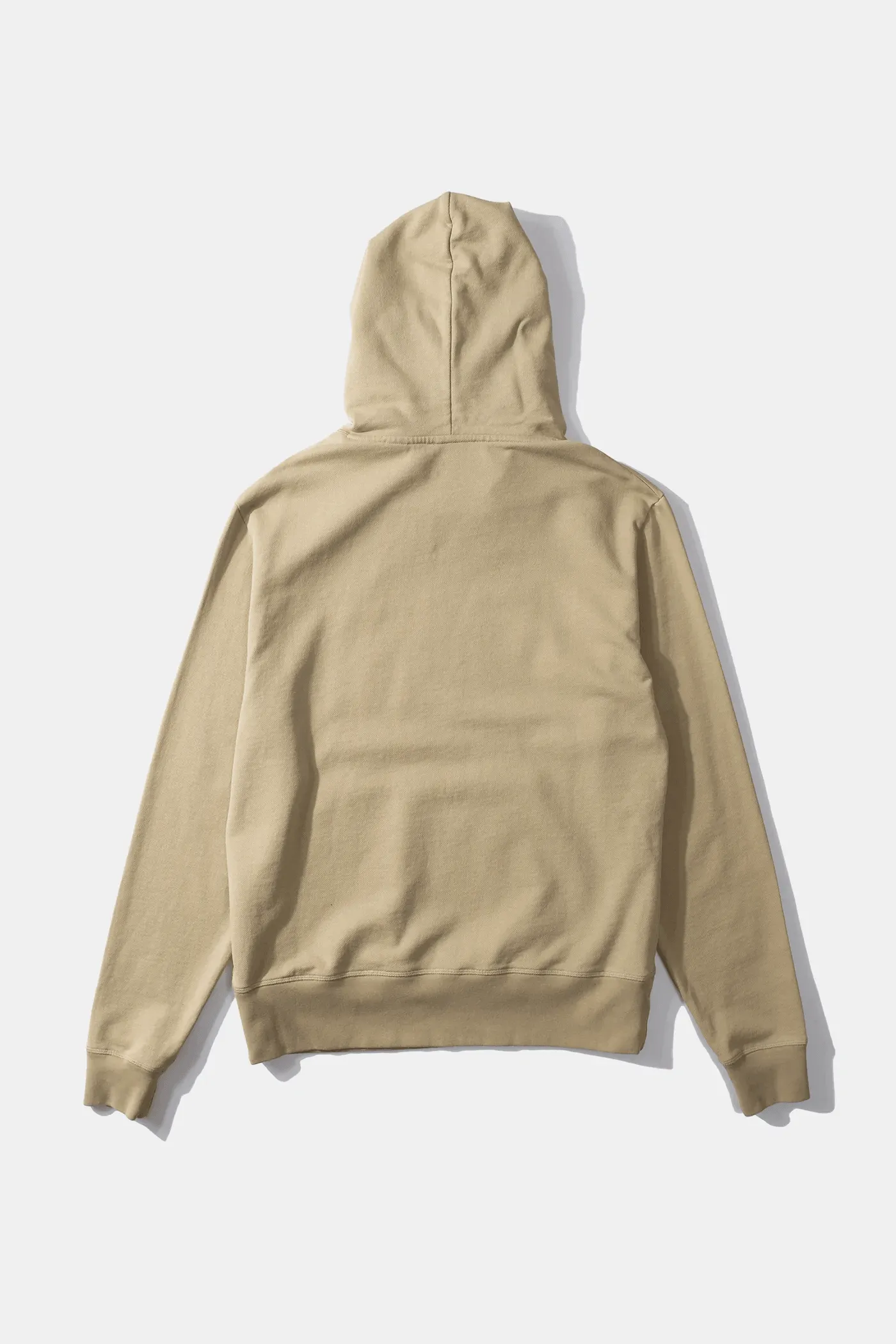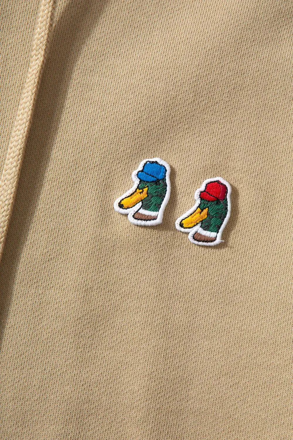Sudadera clásica con capucha en color tostado. Fabricada en algodón 100% orgánico. Cuenta con un bolsillo tipo canguro en la parte delantera, una capucha con cordones, y puños y dobladillo de canalé. Se completa con el logotipo de la cabeza de pato en el costado izquierdo del pecho.