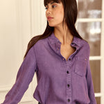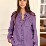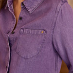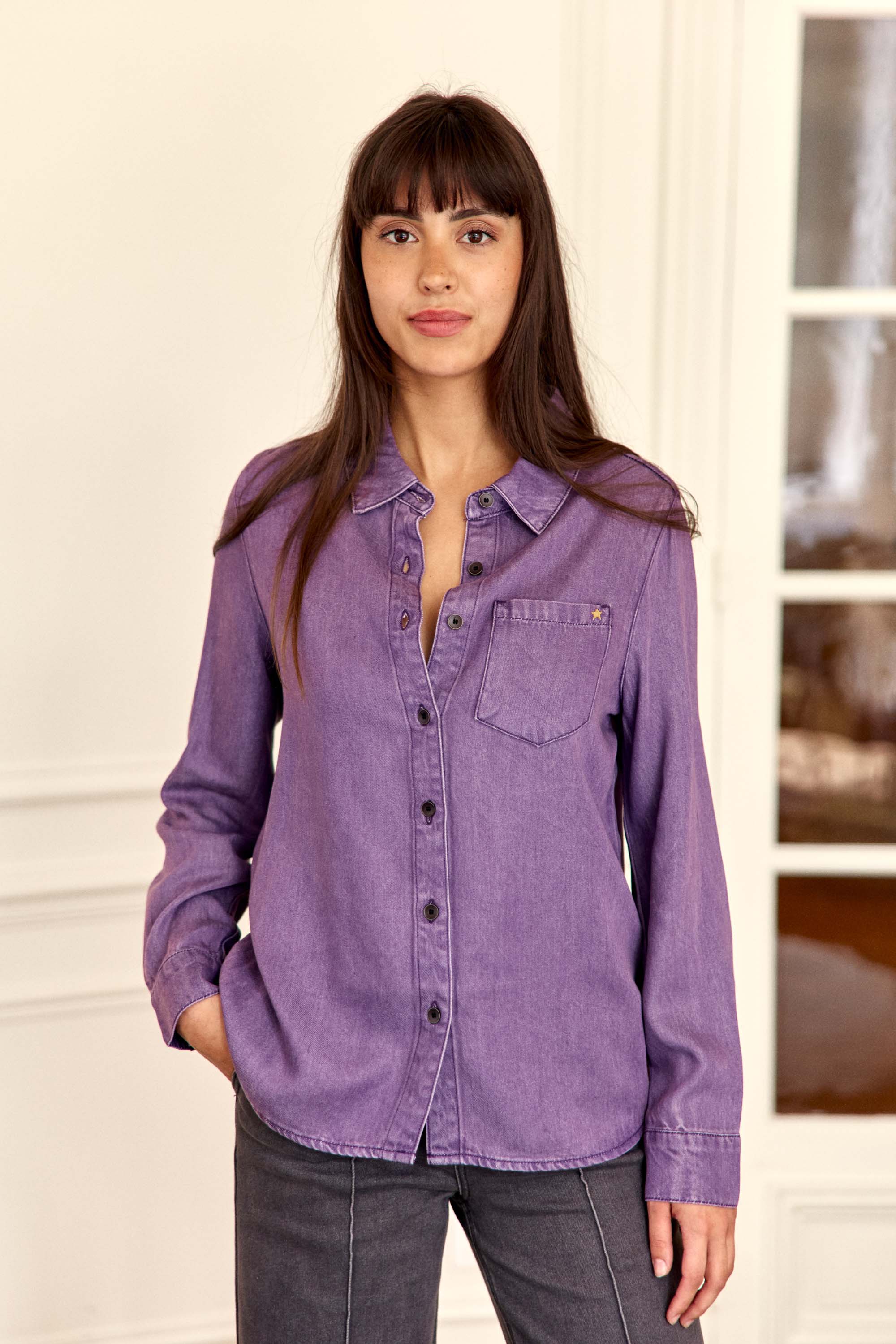 La camisa Clem apuesta por un corte recto en lyocell, con cuello clásico, detalles abotonados y un bolsillo de parche en la parte delantera.