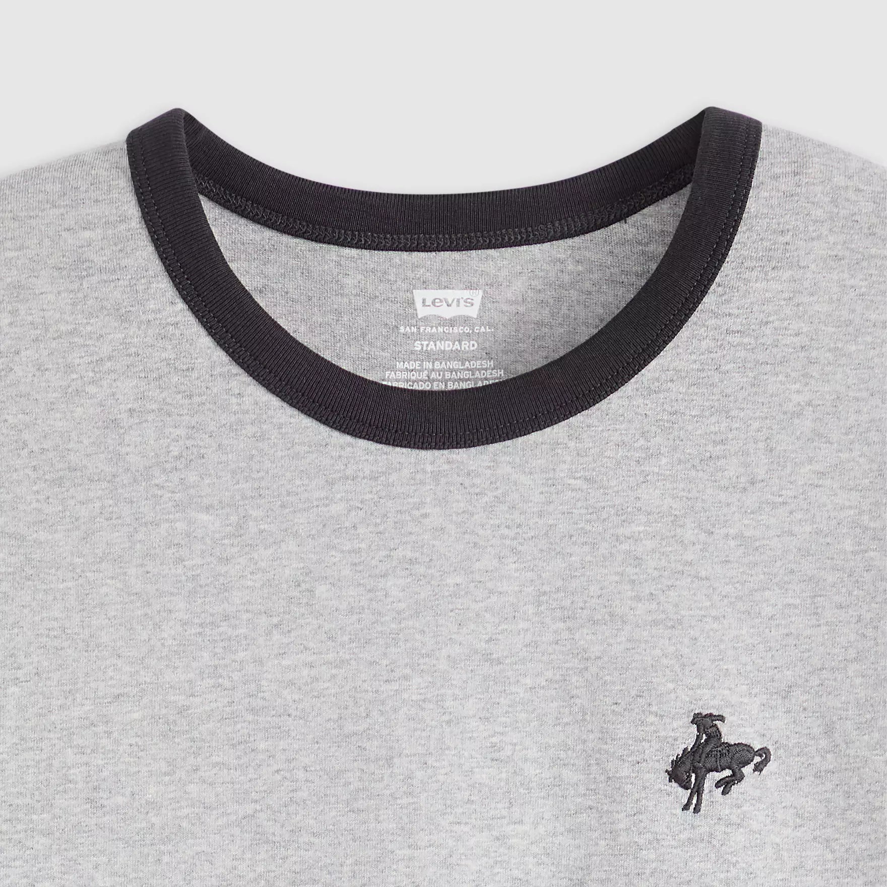 Nos remontamos al pasado con esta camiseta retro con cuello redondo bordado. Con un corte clásico y estándar, hemos diseñado esta prenda con cuello y mangas con ribete y la hemos rematado con el bordado de Levi's®.