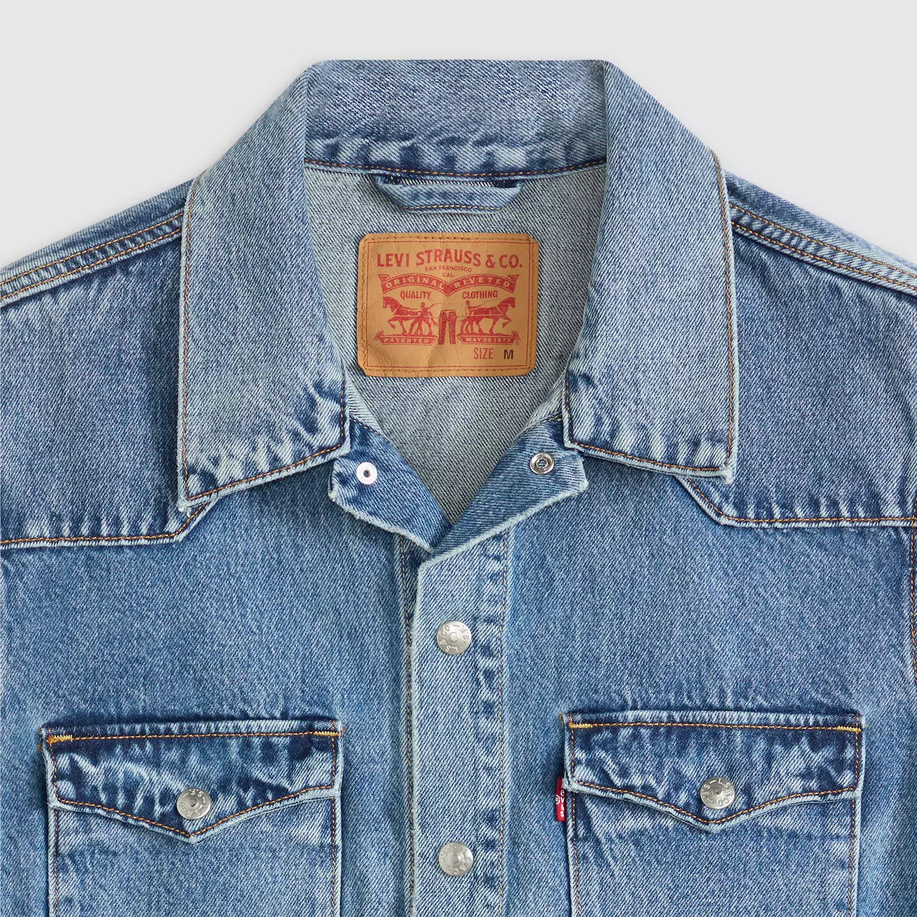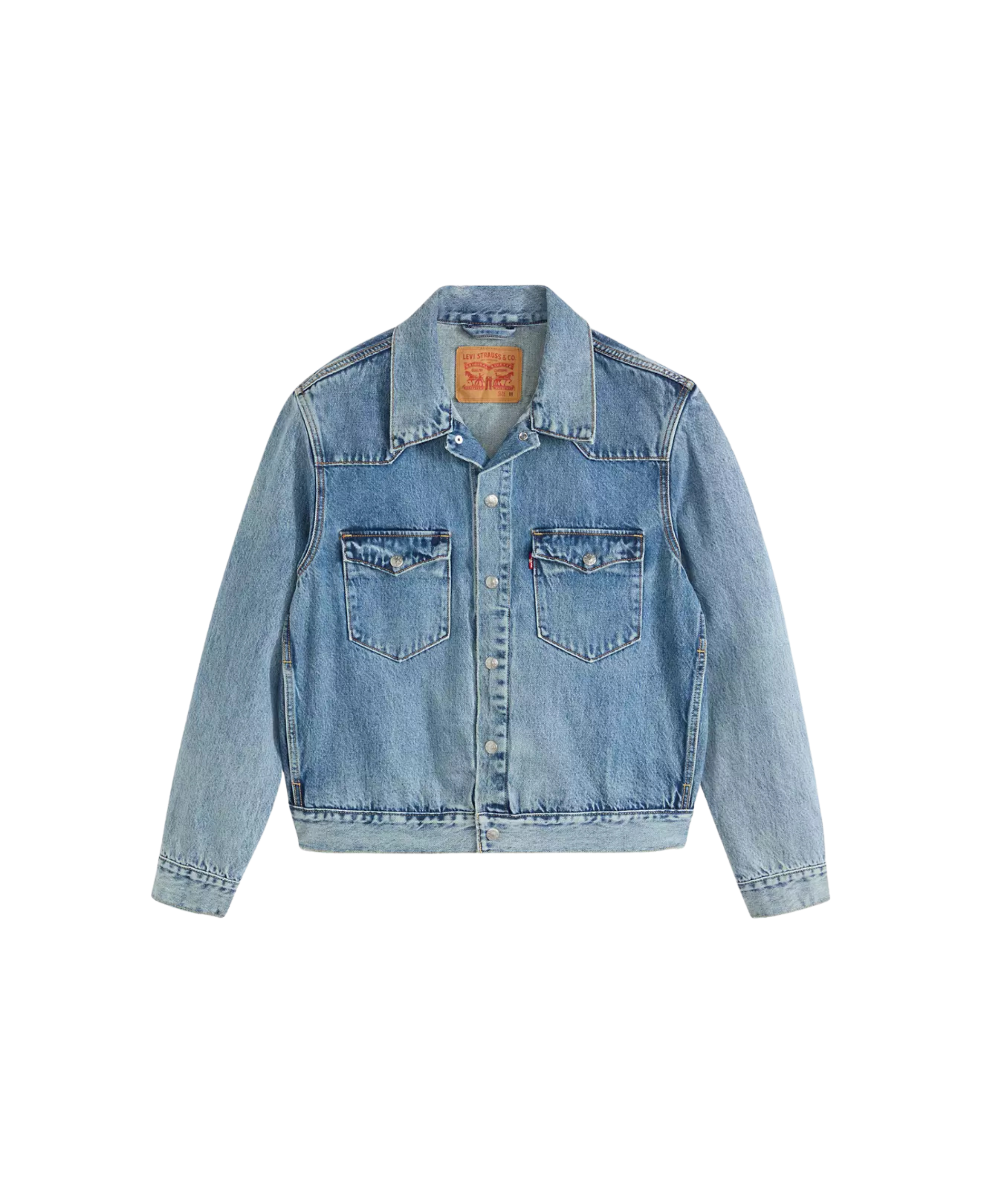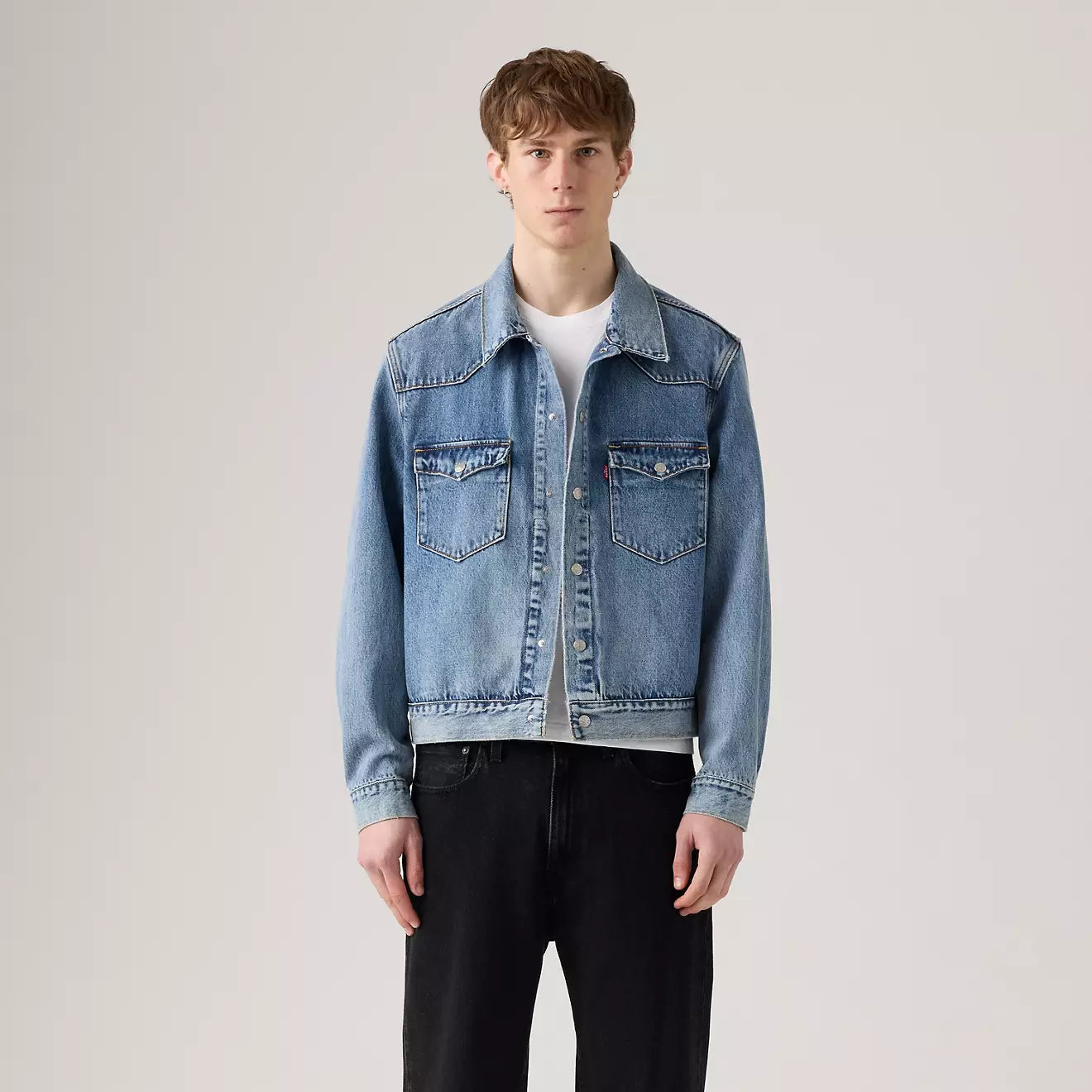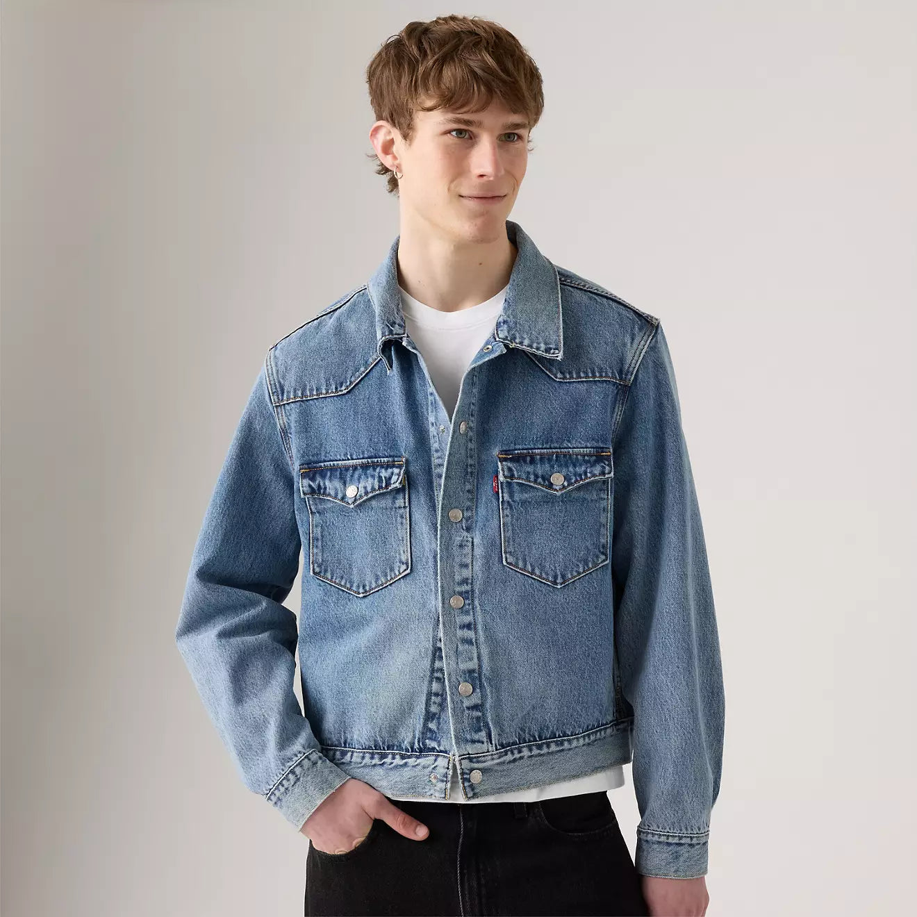 La chaqueta Western Trucker Jacket renueva el clásico estilo denim con detalles inspirados en el Oeste. Está confeccionada en 100 % algodón en tejido de mezclilla de aspecto auténtico, ofreciendo estructura firme y durabilidad. Su corte relajado permite llevarla cómodamente sobre camisetas o capas ligeras. Los detalles como el yugo tipo western y los bolsillos frontales con solapa refuerzan su carácter distintivo.