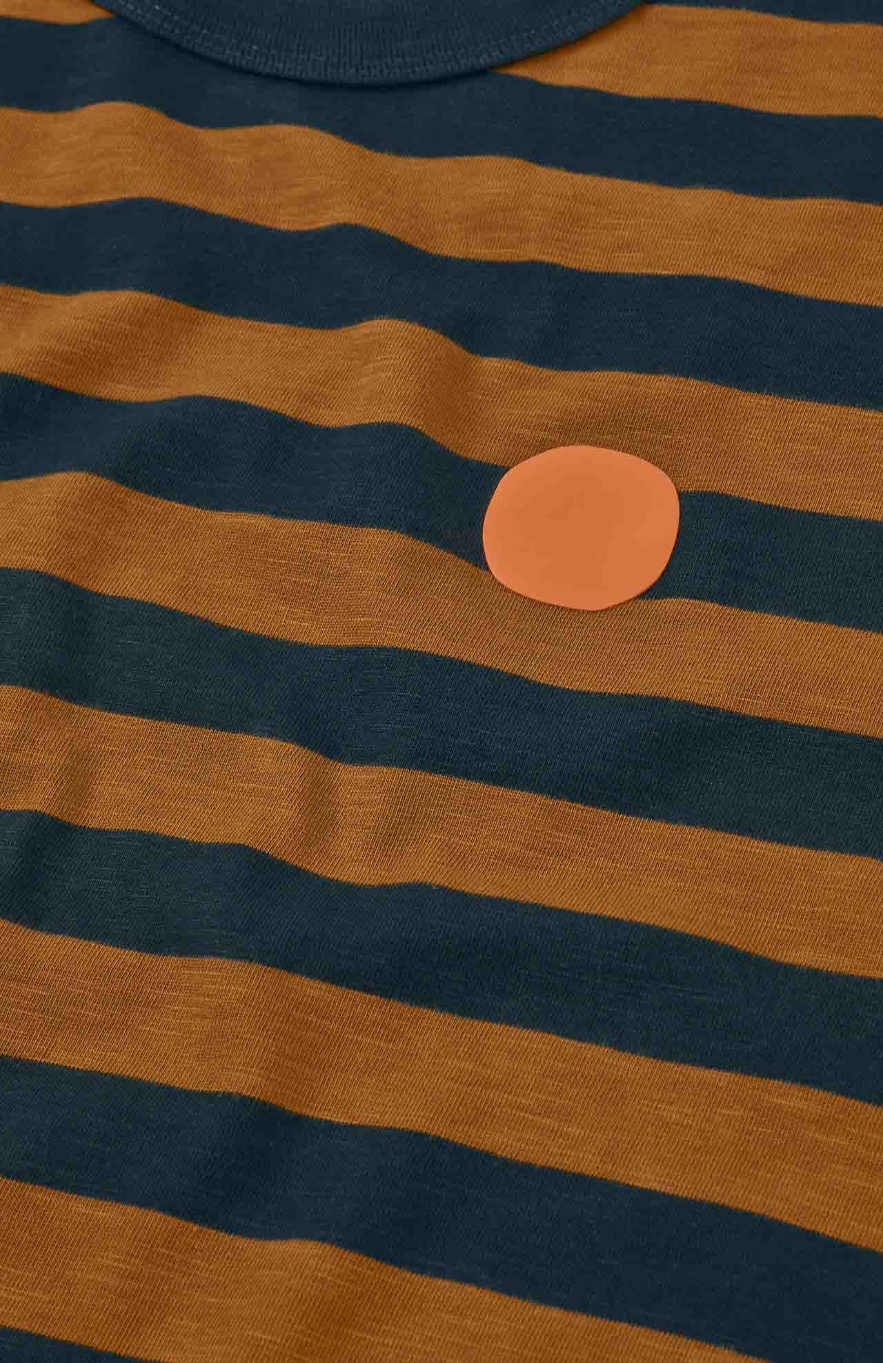 Camiseta de rayas perfecta para cualquier ocasión. Una nueva forma de vestir de forma funcional sin renunciar a la sostenibilidad, gracias a su material principal el algodón orgánico. Además, el detalle DOT hace que sea una prenda de lo más original.
