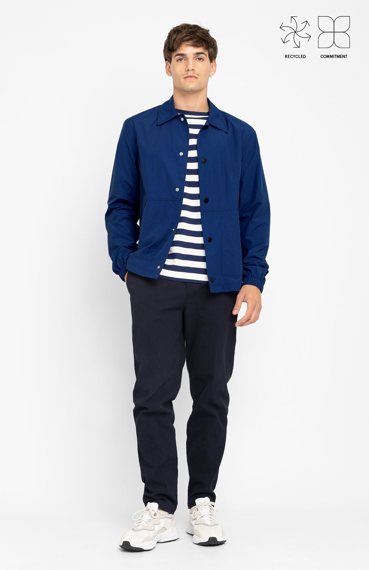 Cazadora confort, confeccionada con nylon reciclado y algodón para una sensación moderna y ecológica. Su cuello camisero resalta su versatilidad y estilo contemporáneo. Con bolsillos delanteros con cierre de snap, este diseño te ofrece seguridad y funcionalidad, con un pequeño print de Loreak Mendian para ese toque distintivo. Completa tu look con la cinta en contraste en la espalda para un toque de originalidad.