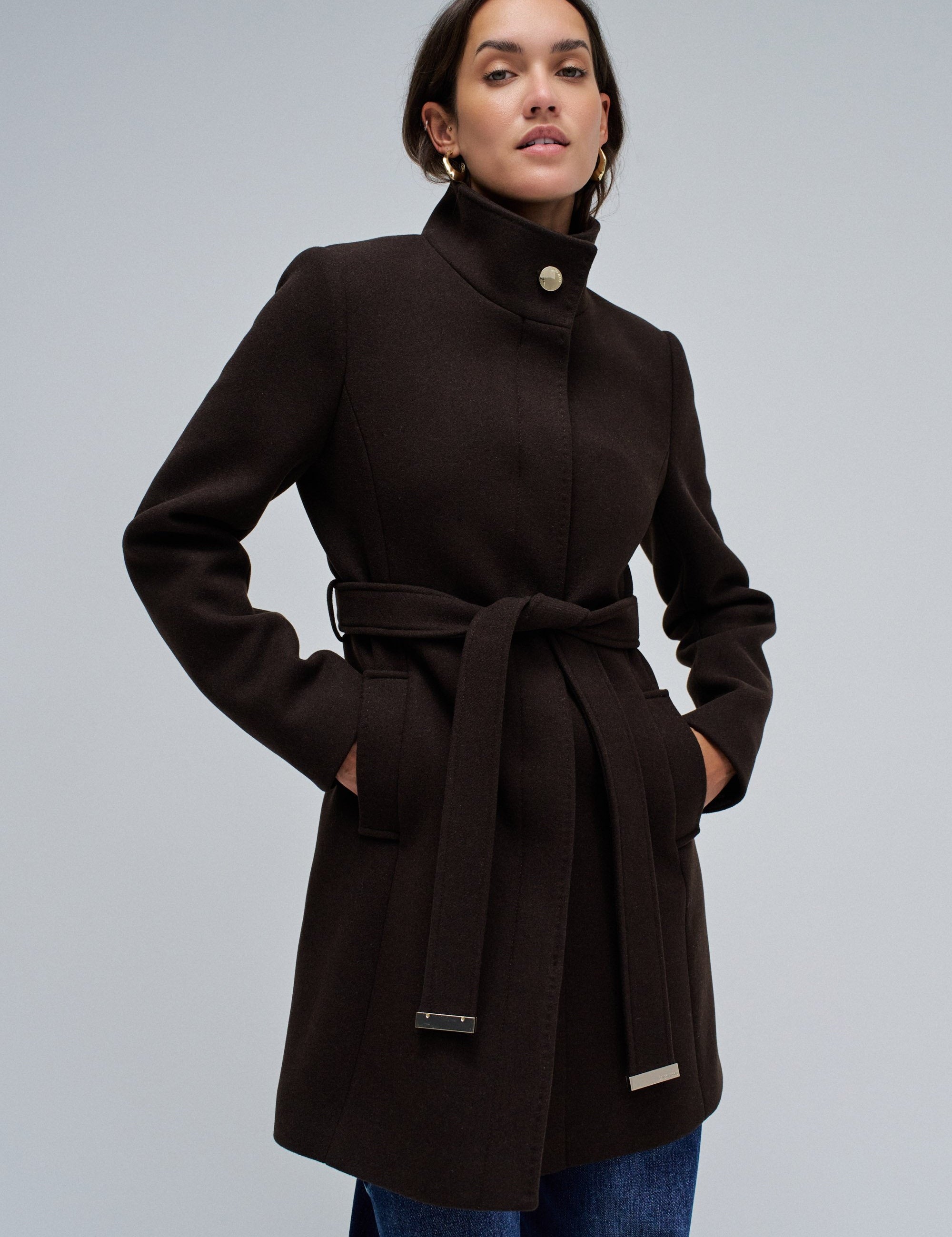 Abrigo SALSA JEANS Paño Grace con Cinturón Dark Brown